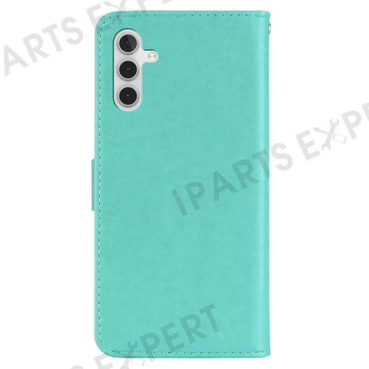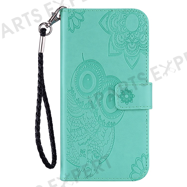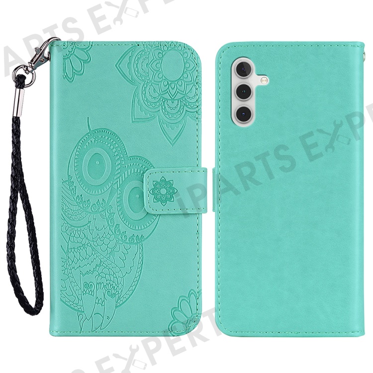 For Samsung Galaxy S24 FE Case Owl Flower Imprinted Leather Cover Wallet with Strap - Cyan