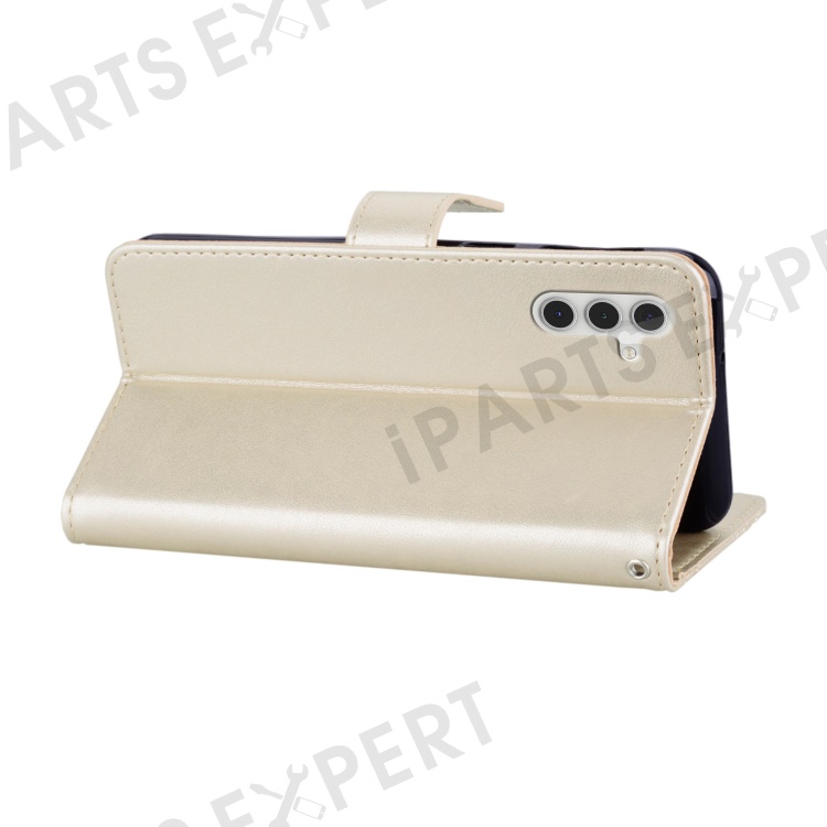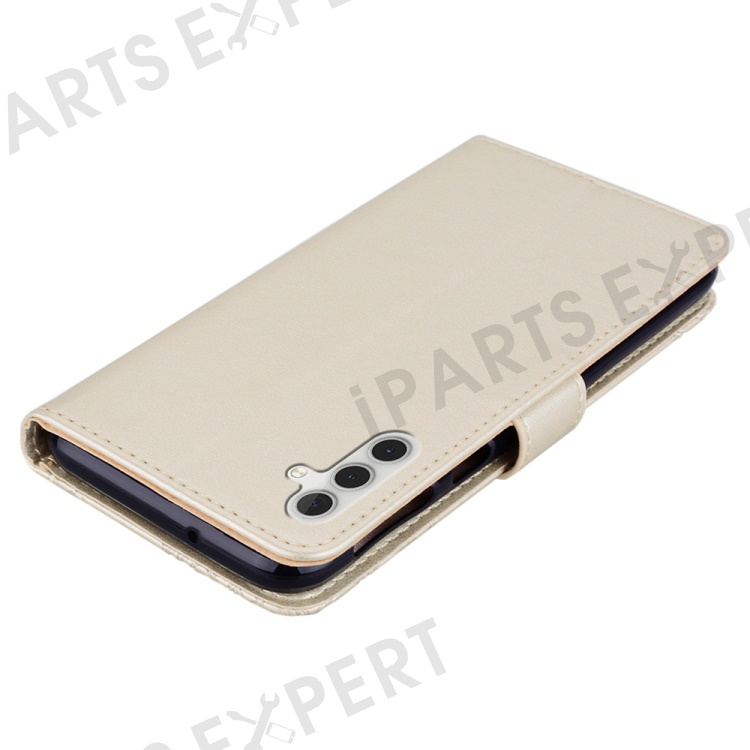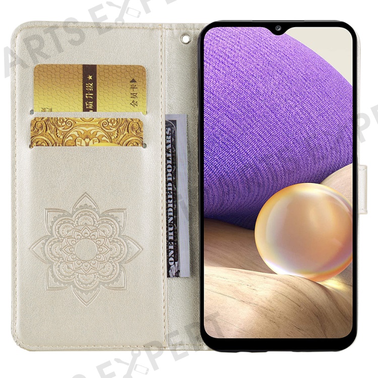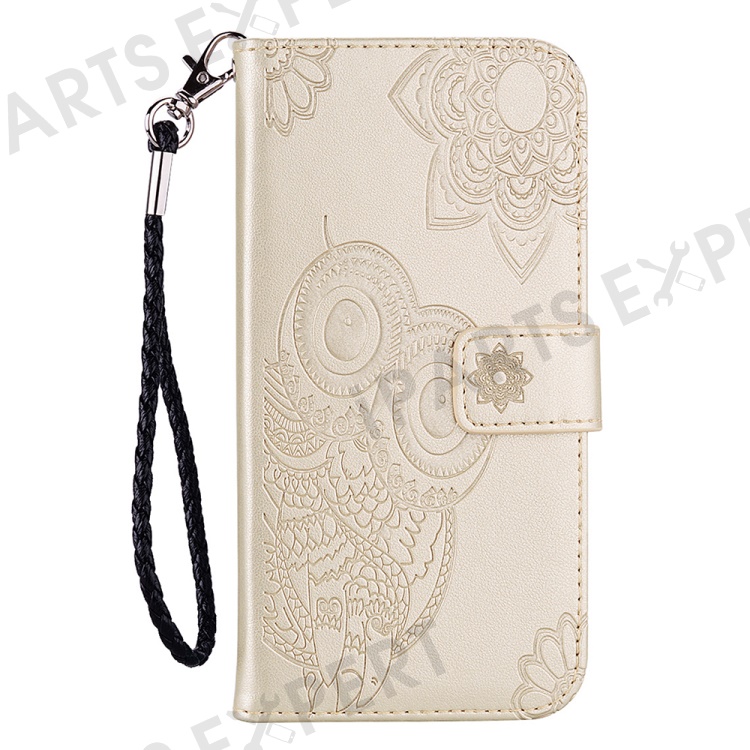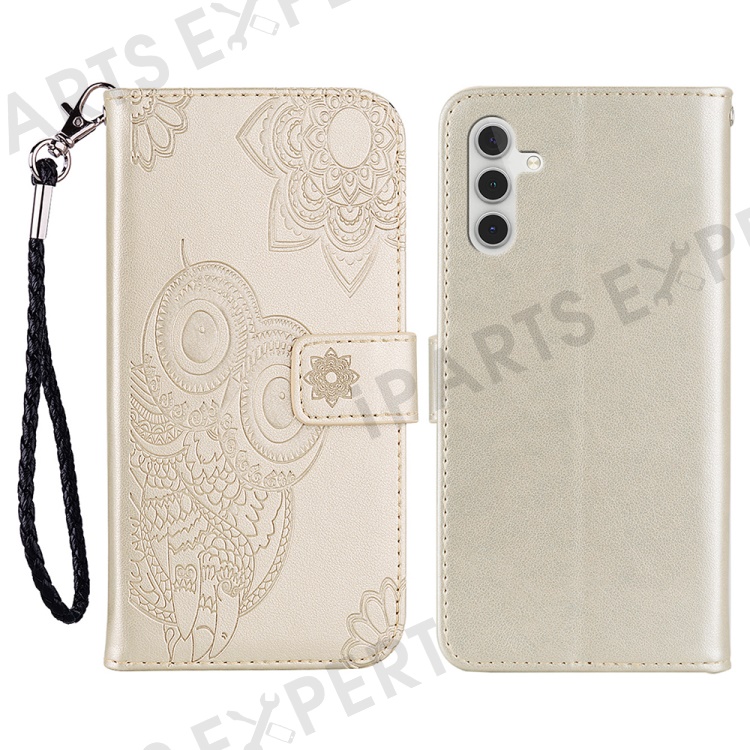 For Samsung Galaxy S24 FE Case Owl Flower Imprinted Leather Cover Wallet with Strap - Gold