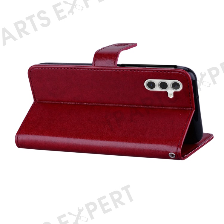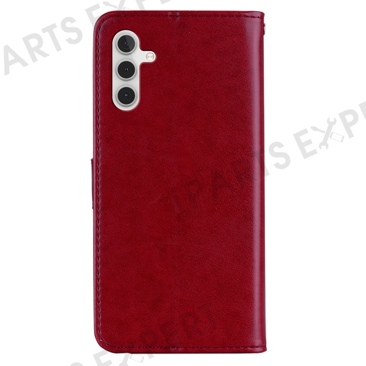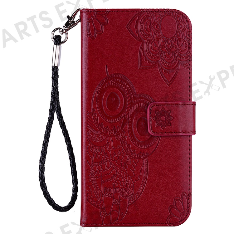 For Samsung Galaxy S24 FE Case Owl Flower Imprinted Leather Cover Wallet with Strap - Red