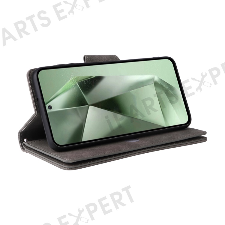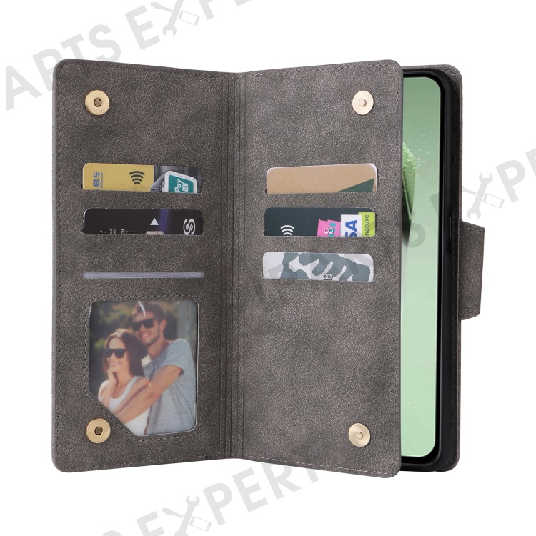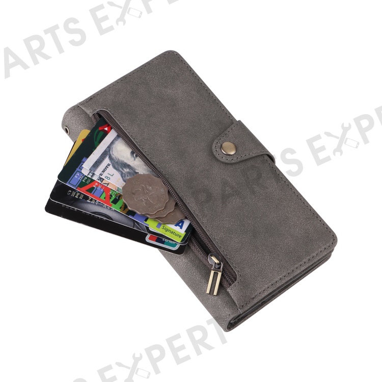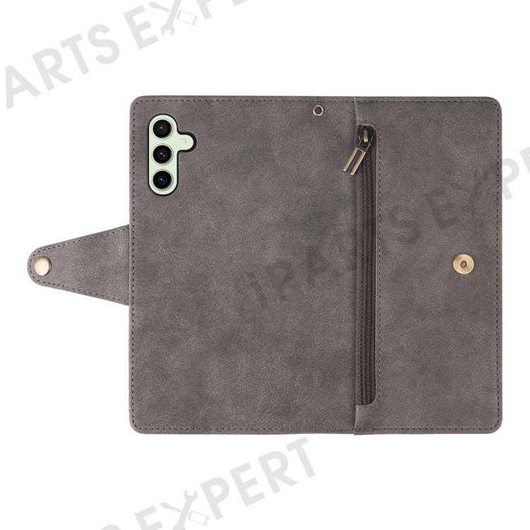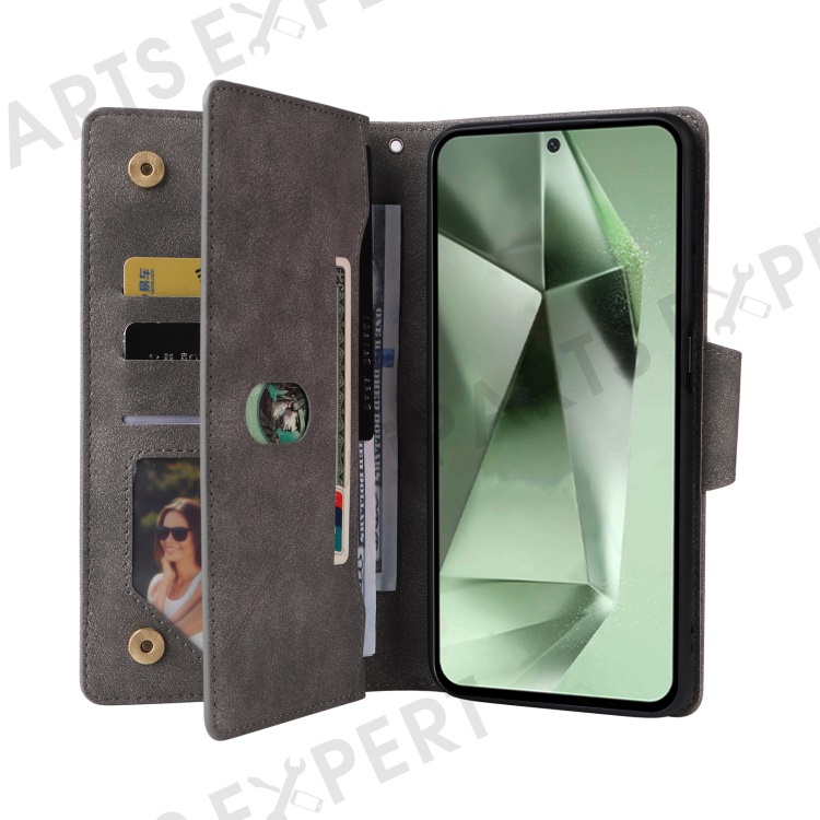 For Samsung Galaxy S24 FE Case Rivet Decor Zipper Pocket Leather Phone Cover - Grey