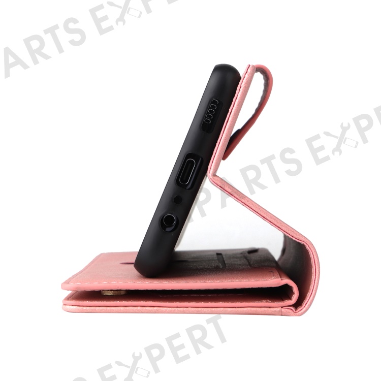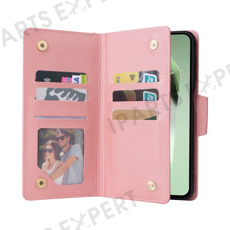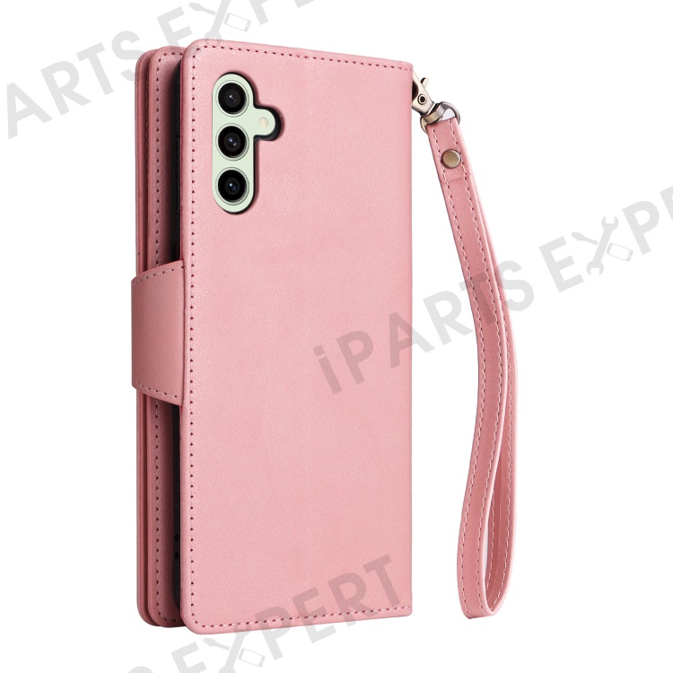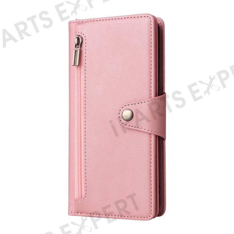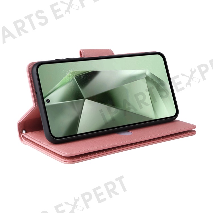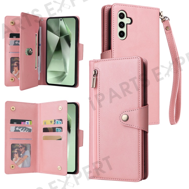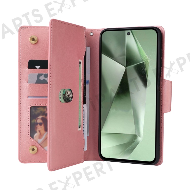 For Samsung Galaxy S24 FE Case Rivet Decor Zipper Pocket Leather Phone Cover - Rose Gold
