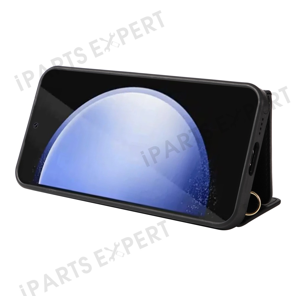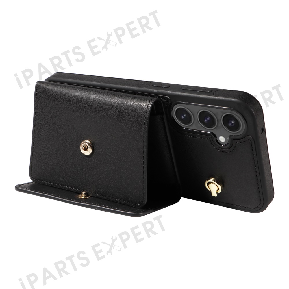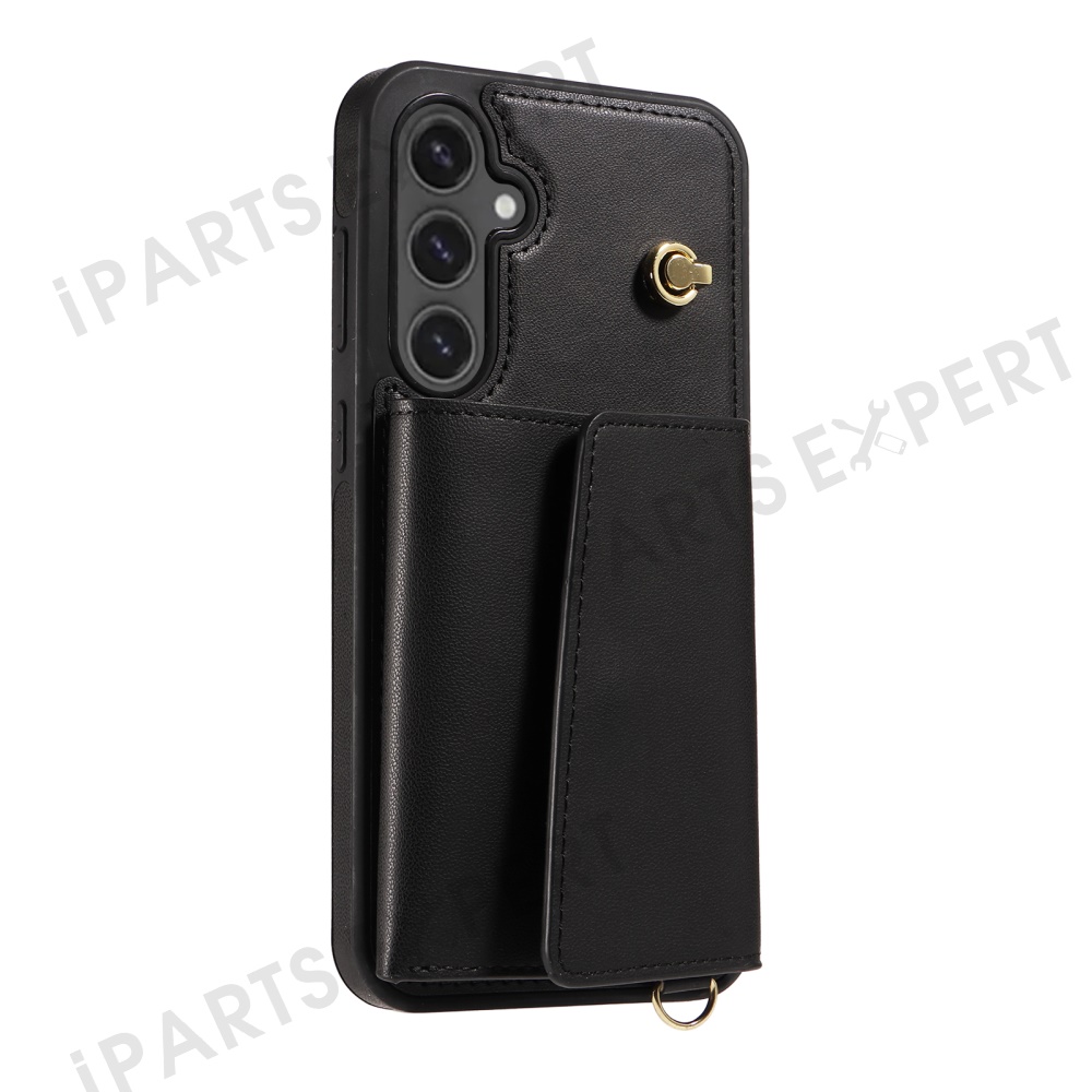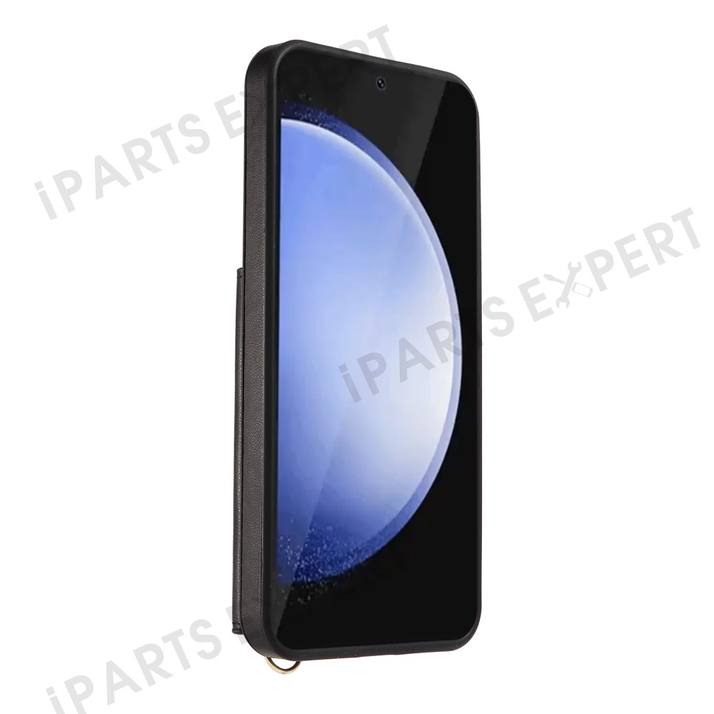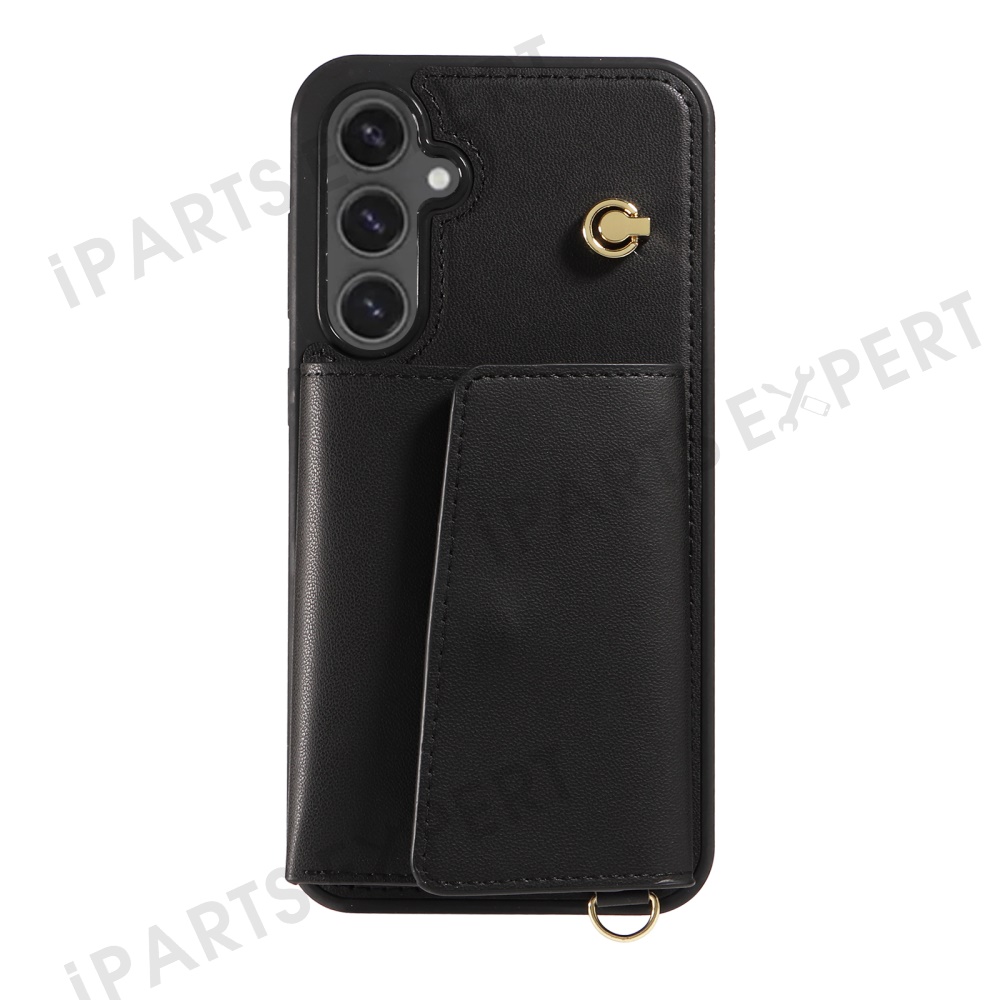For Samsung Galaxy S24 FE Crossbody Phone Case Card Holder Kickstand Leather Coated TPU Mobile Cover - Black