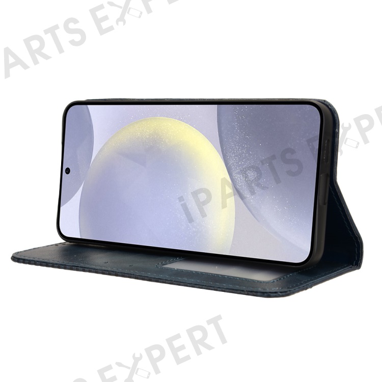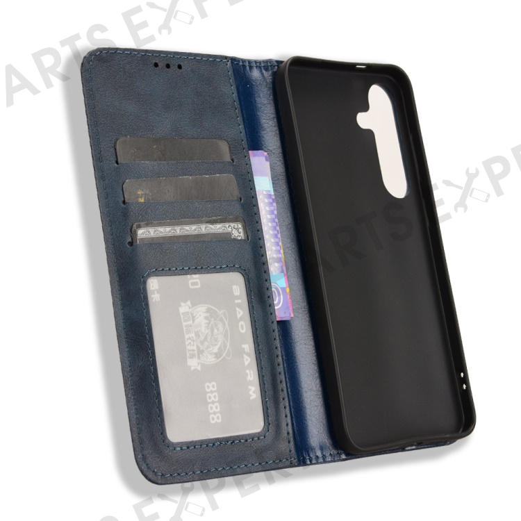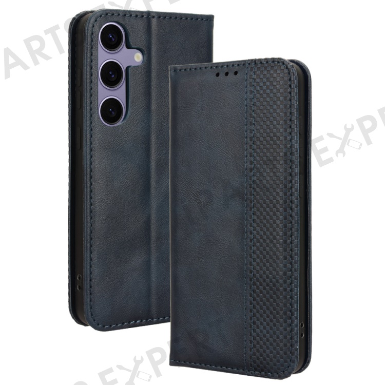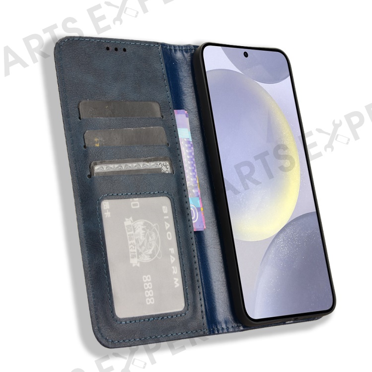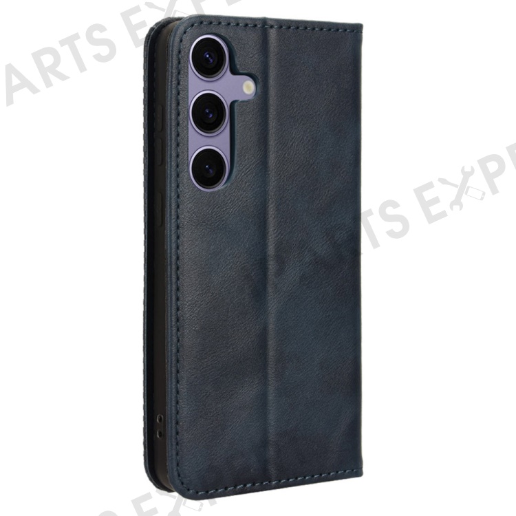 For Samsung Galaxy S24 FE Leather Case Wallet Stand Retro Texture Phone Cover - Blue
