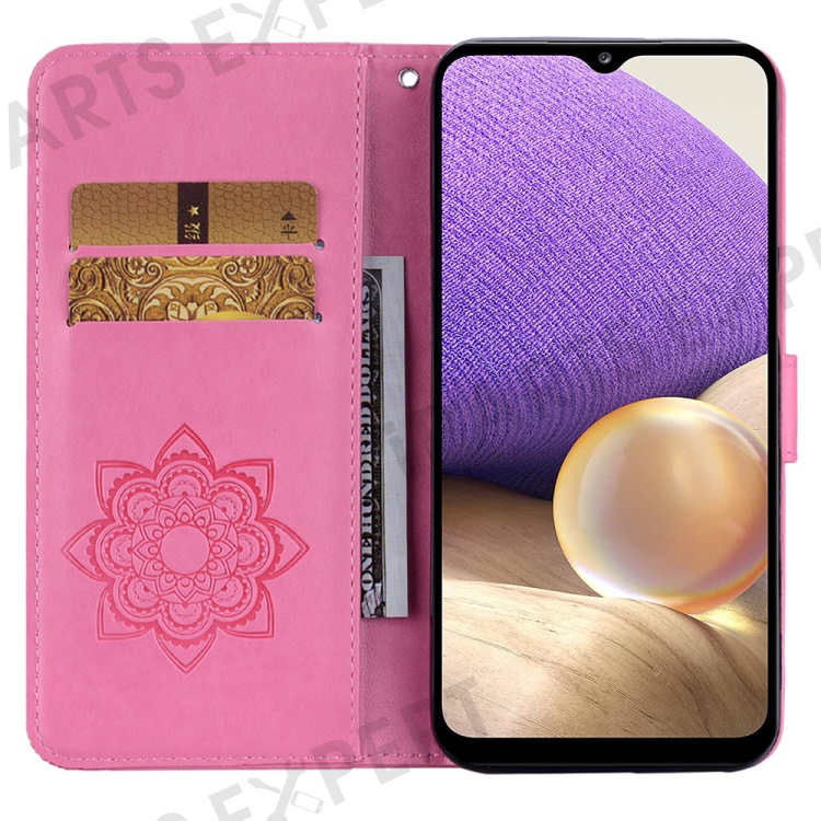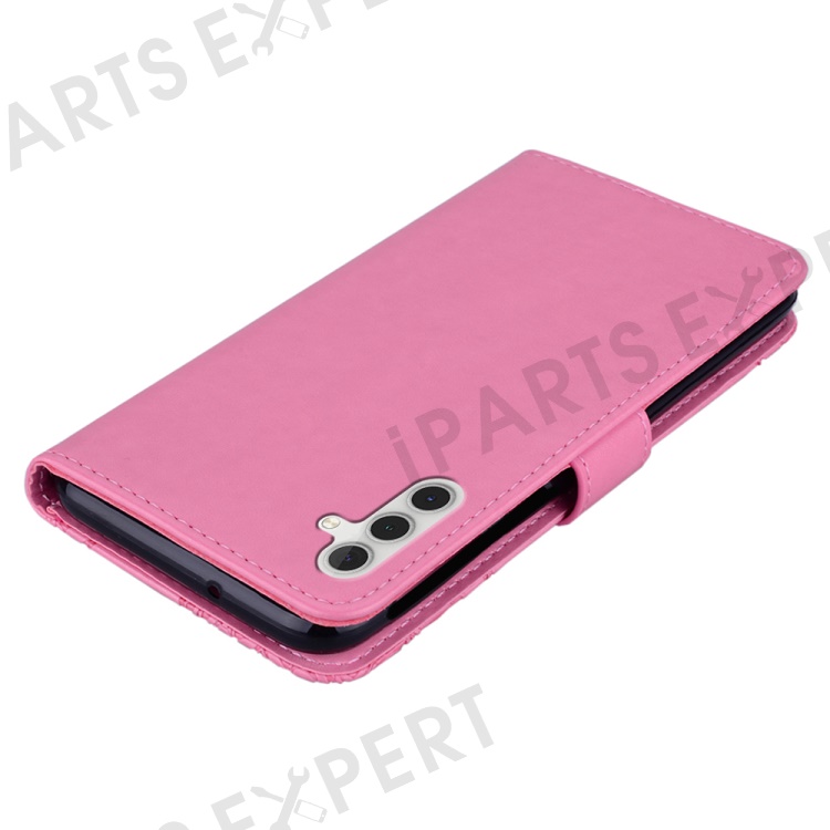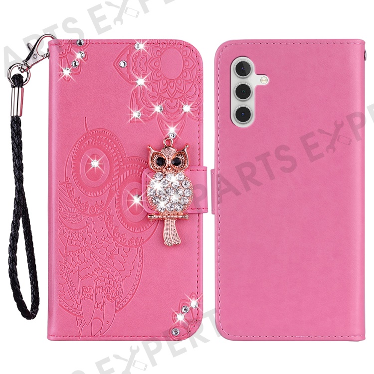 For Samsung Galaxy S24 FE Wallet Case Owl Flower Imprinted Rhinestone Leather Cover - Rose