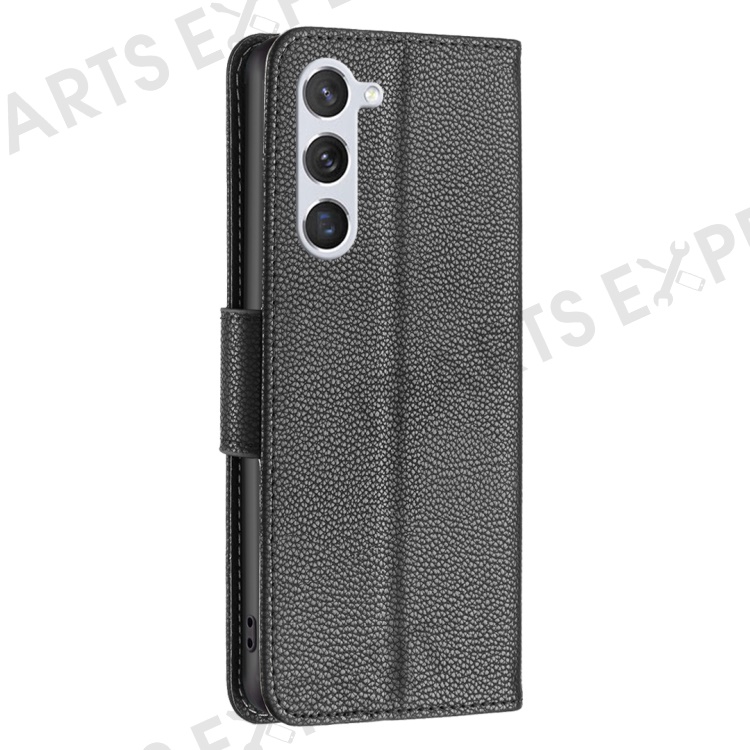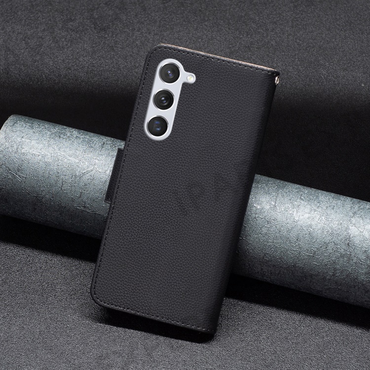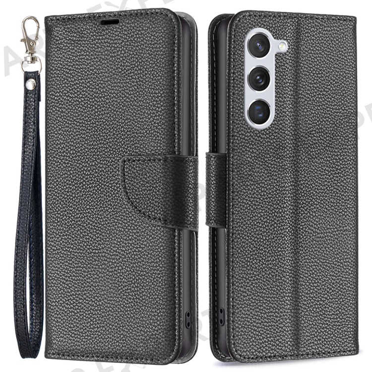 For Samsung Galaxy S25 / S24 Wallet Case with Wrist Strap Litchi Texture Leather Phone Stand Cover - Black