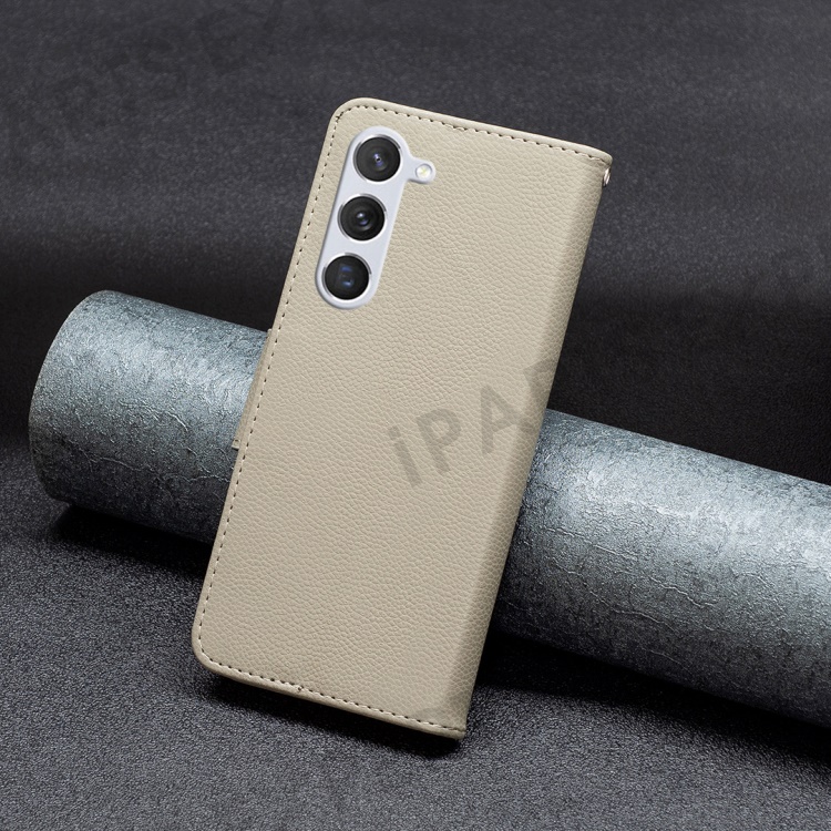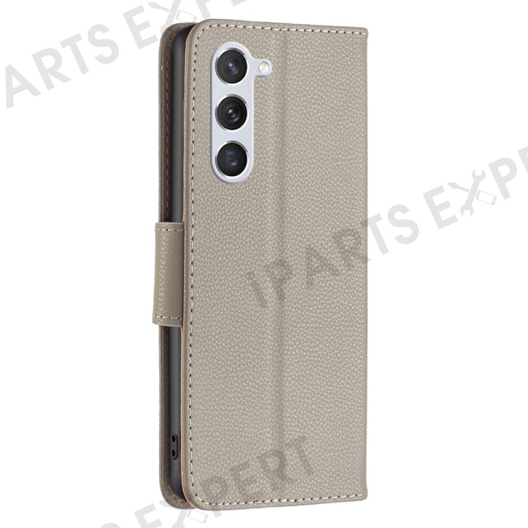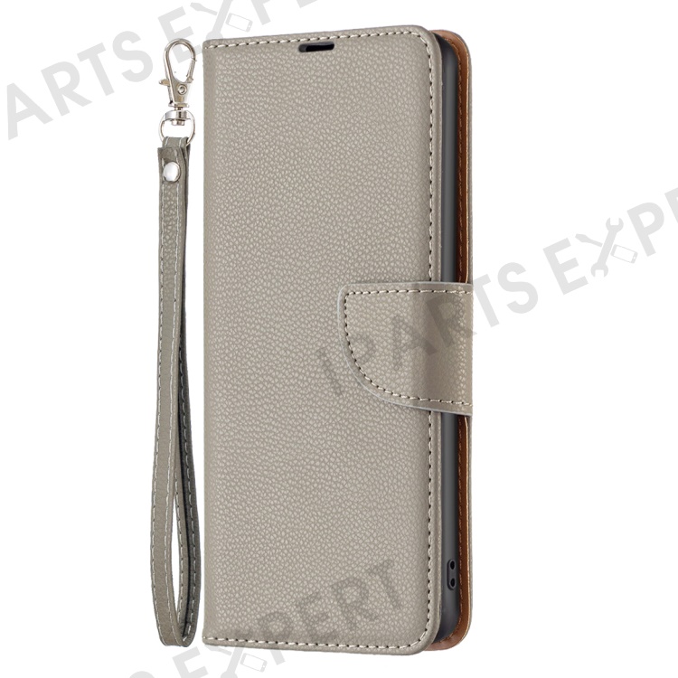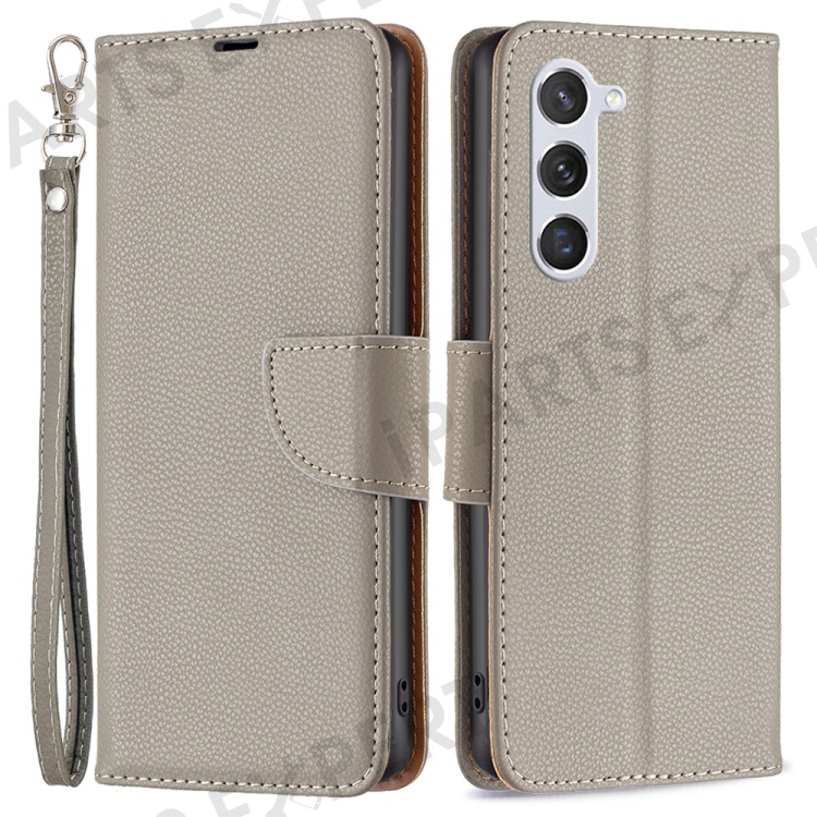 For Samsung Galaxy S25 / S24 Wallet Case with Wrist Strap Litchi Texture Leather Phone Stand Cover - Grey