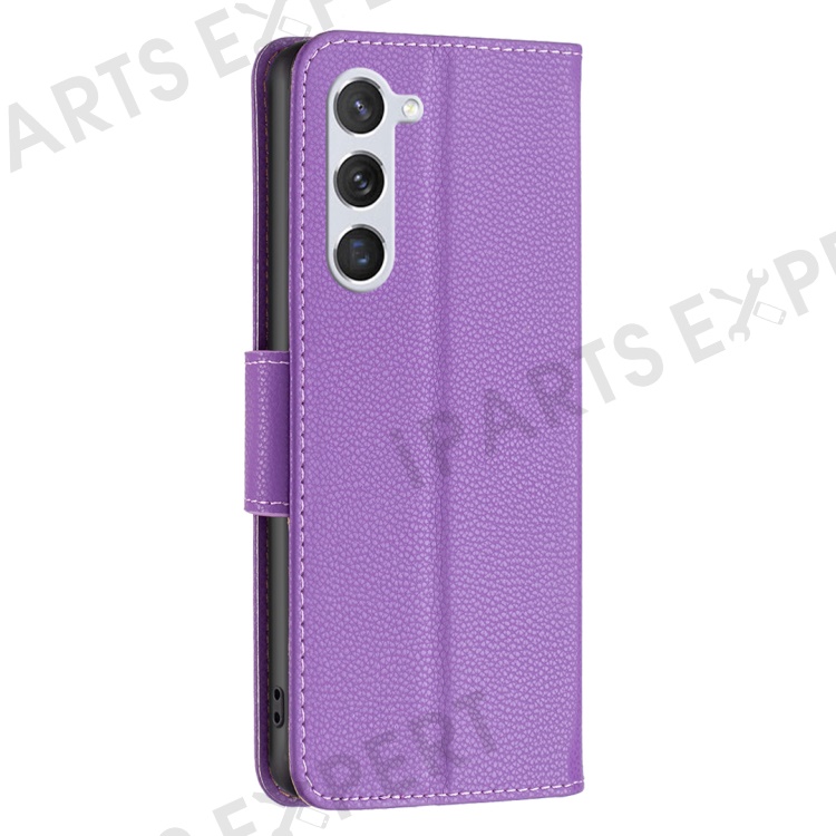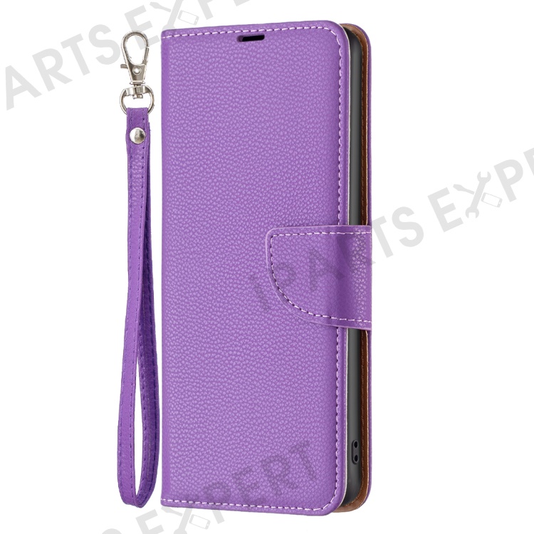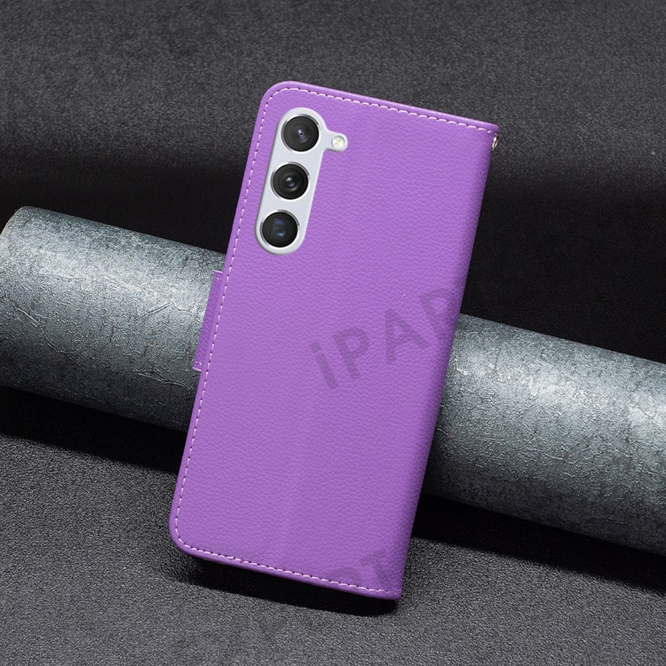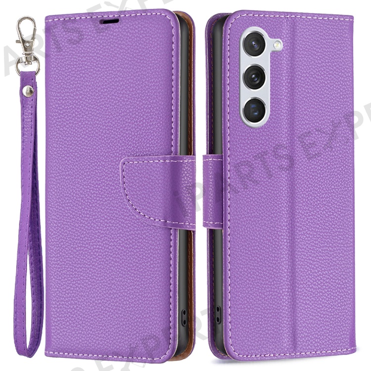 For Samsung Galaxy S25 / S24 Wallet Case with Wrist Strap Litchi Texture Leather Phone Stand Cover - Purple