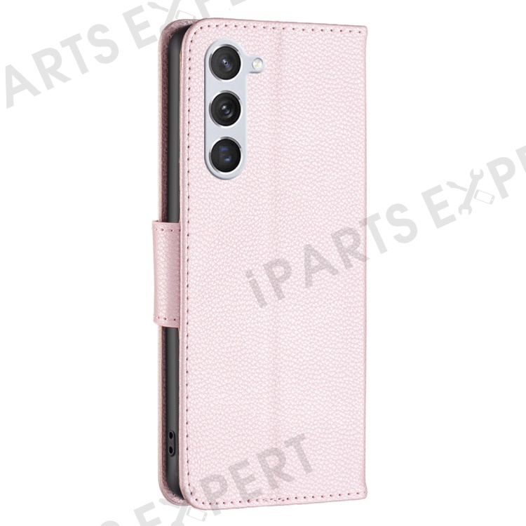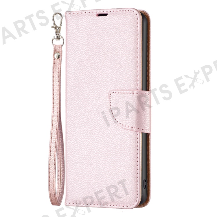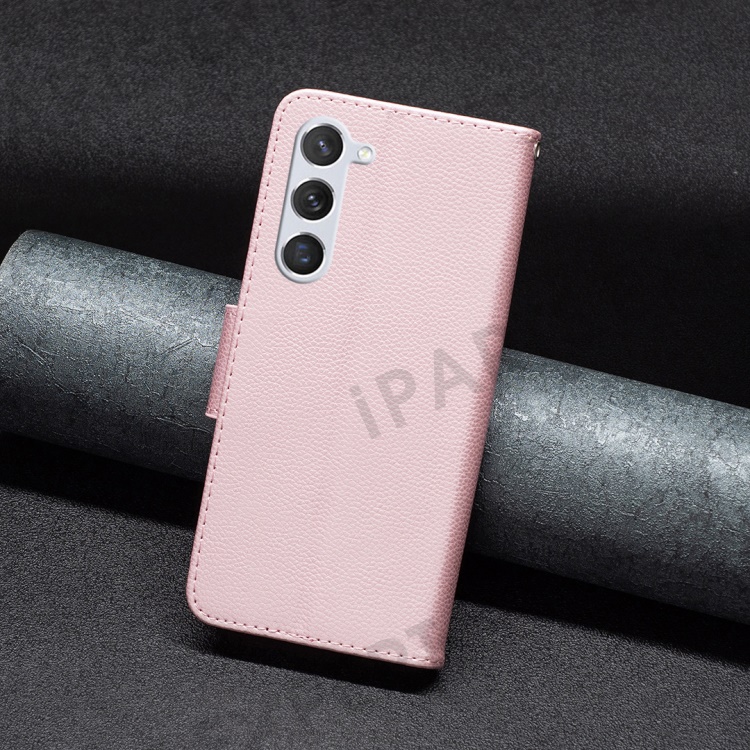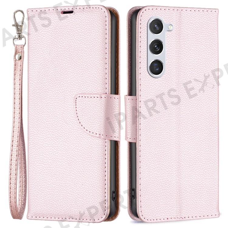 For Samsung Galaxy S25 / S24 Wallet Case with Wrist Strap Litchi Texture Leather Phone Stand Cover - Rose Gold