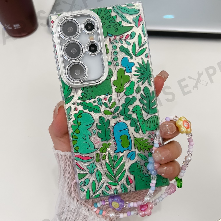 For Samsung Galaxy S24 Ultra Case IMD Cartoon PC+TPU Back Cover with Glass Lens Film, Beaded Strap - MK1