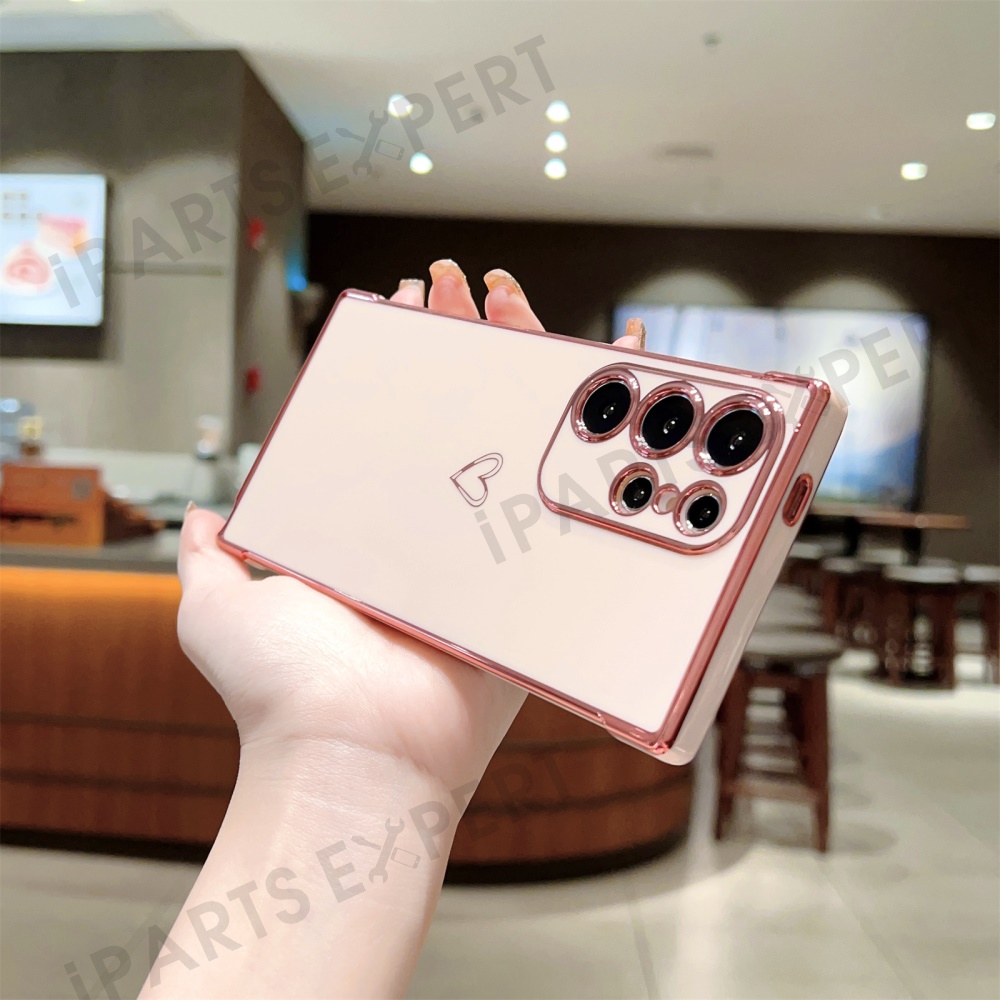 For Samsung Galaxy S24 Ultra Case Love Heart Pattern TPU Phone Cover Electroplating Edge - Pink