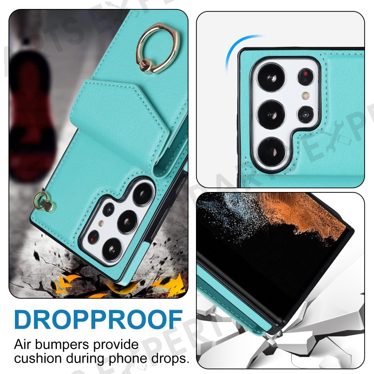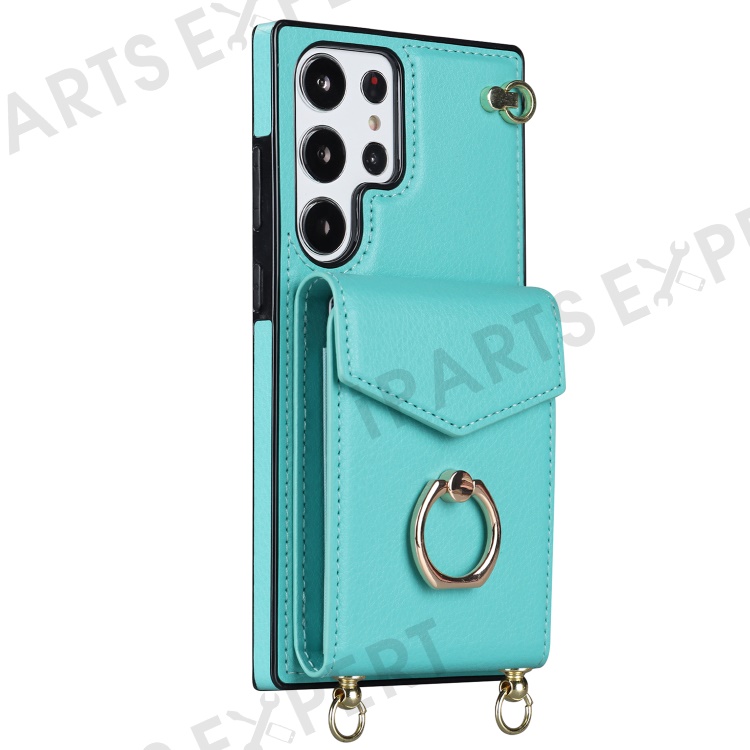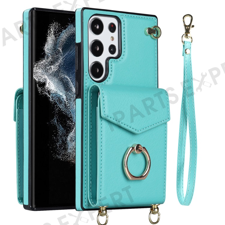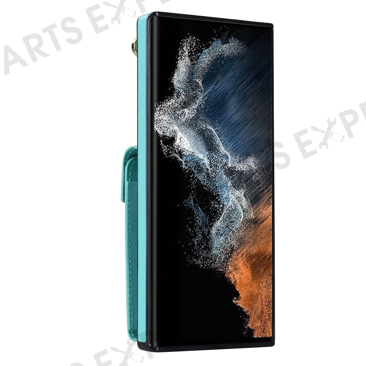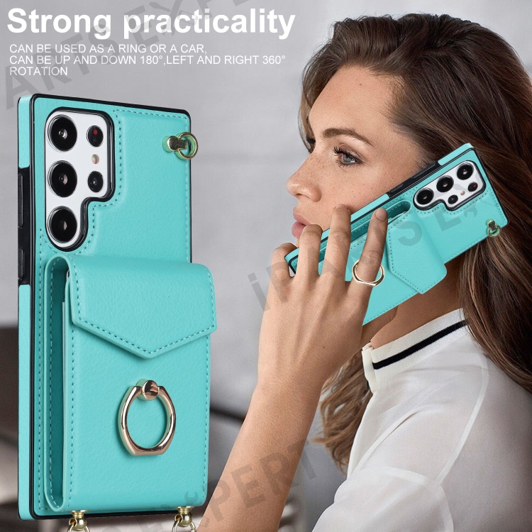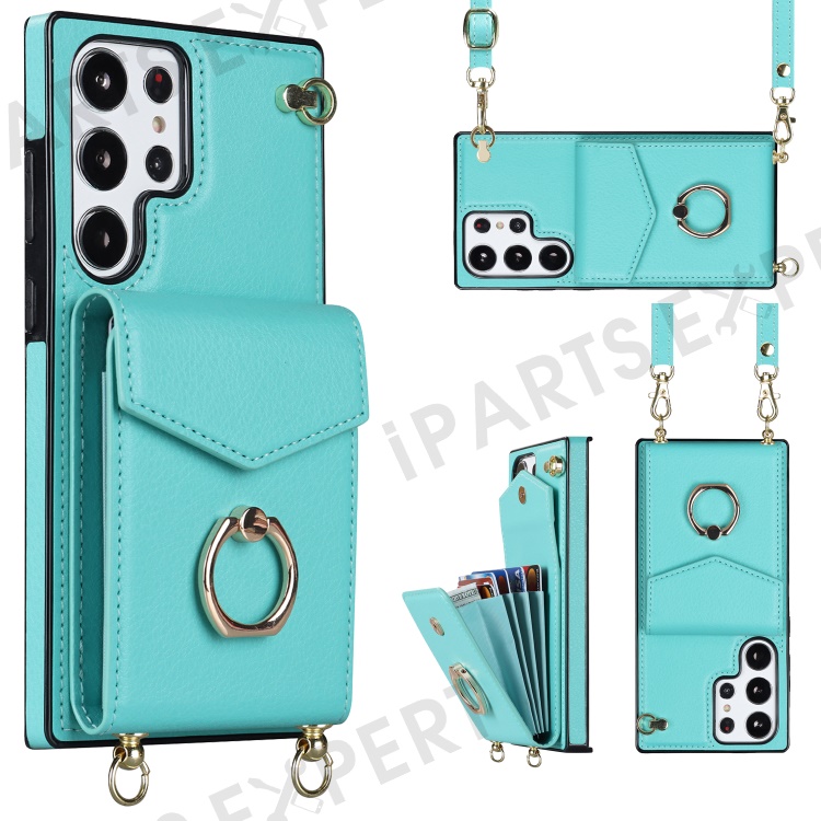 For Samsung Galaxy S24 Ultra Cell Phone Case Accordion Card Bag Ring Kickstand Back Cover - Mint Green