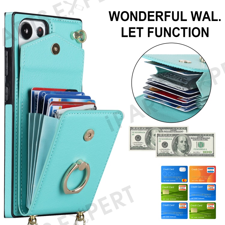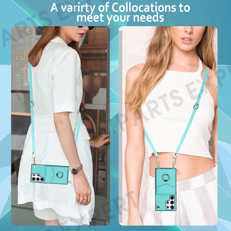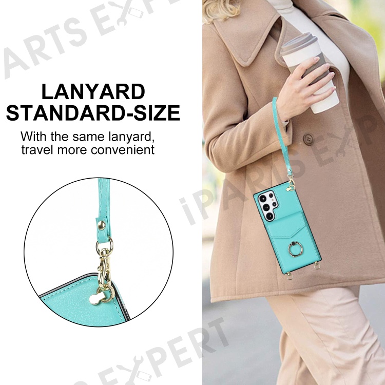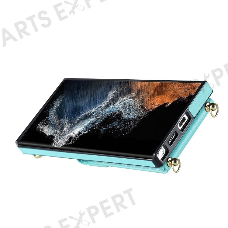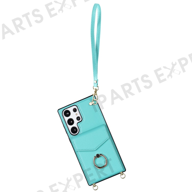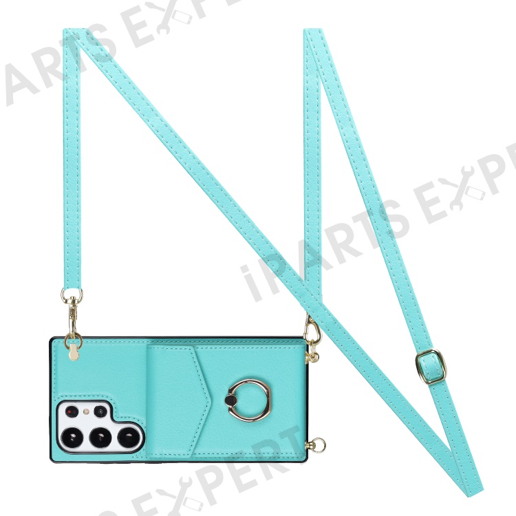For Samsung Galaxy S24 Ultra Cell Phone Case Accordion Card Bag Ring Kickstand Back Cover - Mint Green