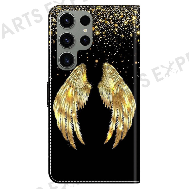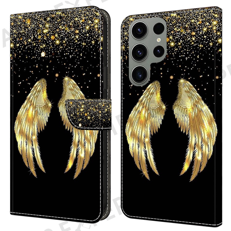 For Samsung Galaxy S24 Ultra Wallet Case PU Leather 3D Pattern Printing Stand Cover - Gold Wing