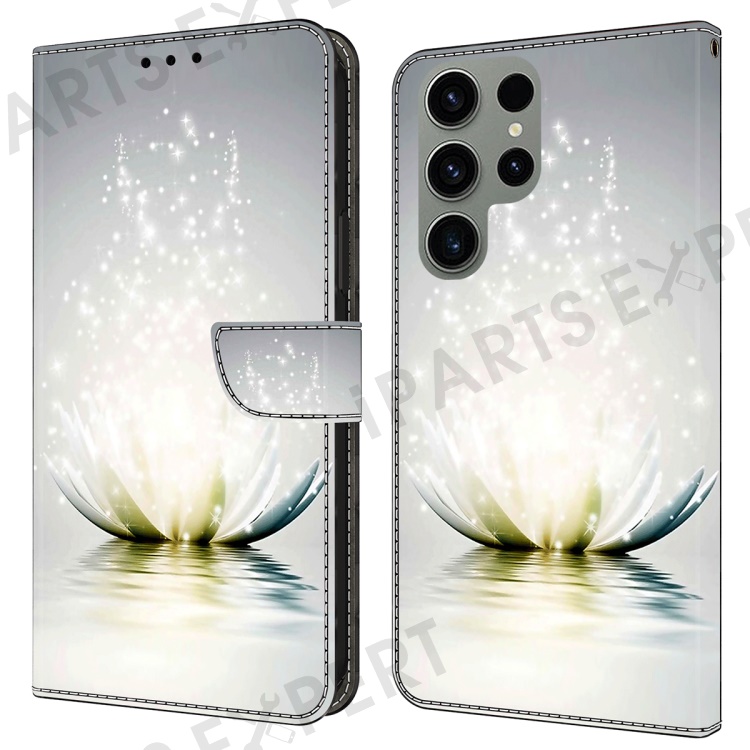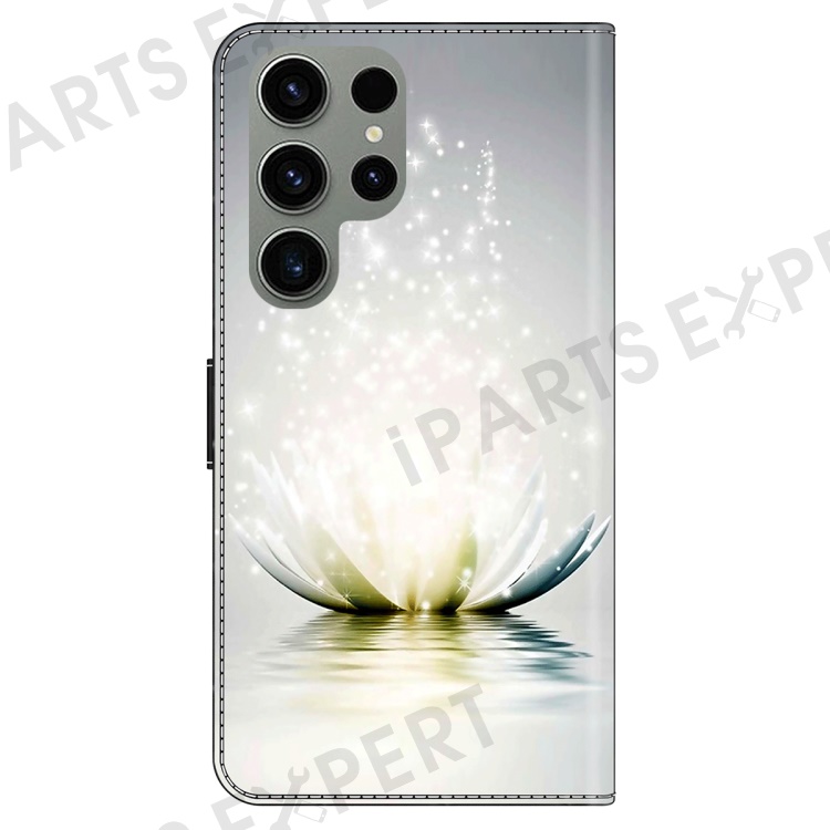 For Samsung Galaxy S24 Ultra Wallet Case PU Leather 3D Pattern Printing Stand Cover - Lotus