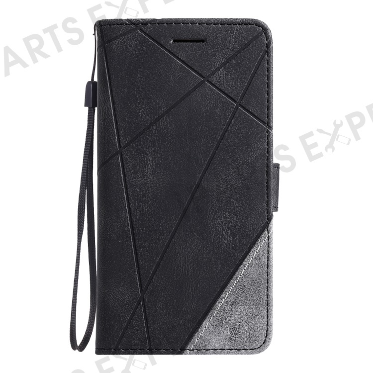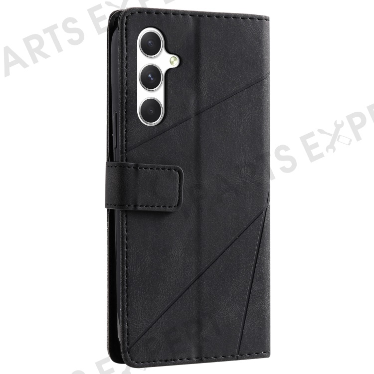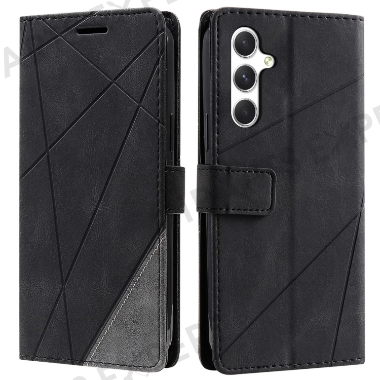 For Samsung Galaxy S25+ Case Imprinted Lines PU Leather Splicing Wallet Phone Cover - Black