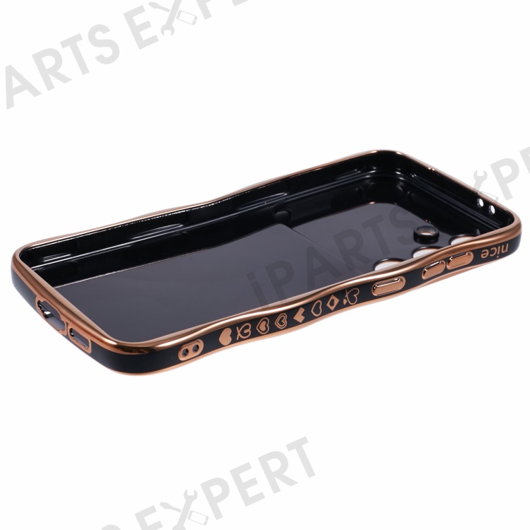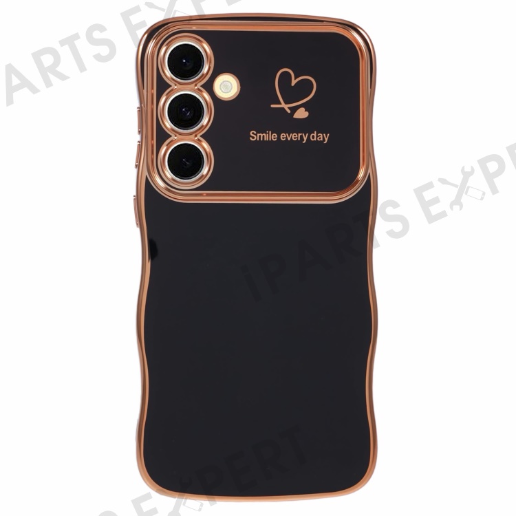 For Samsung Galaxy S25 Case Love Hearts TPU Phone Cover Curly Wave Frame Large Window - Black