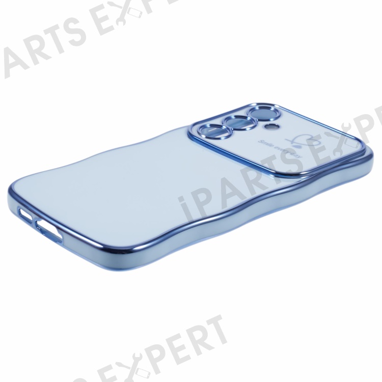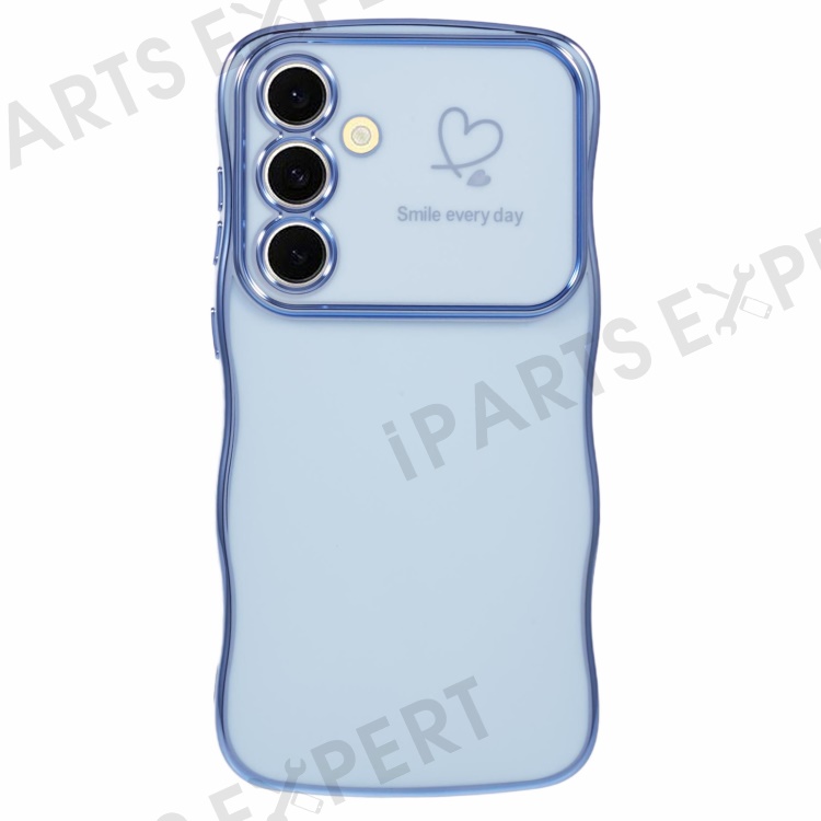 For Samsung Galaxy S25 Case Love Hearts TPU Phone Cover Curly Wave Frame Large Window - Blue