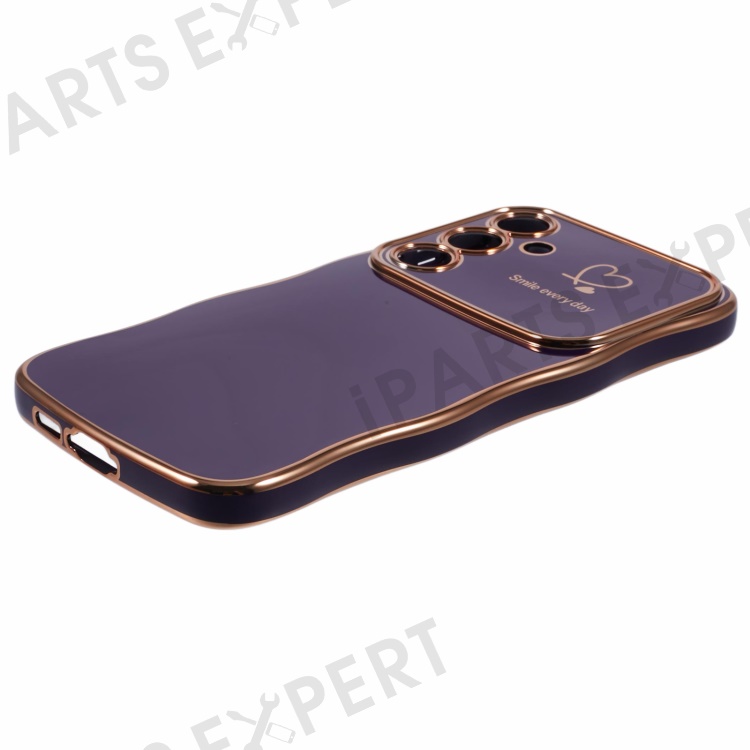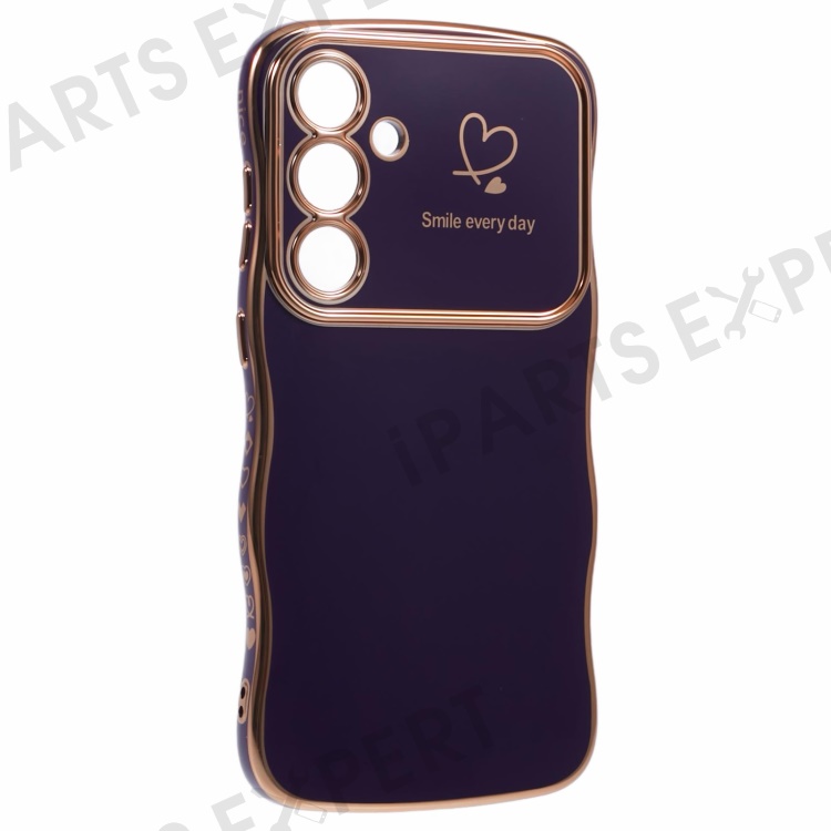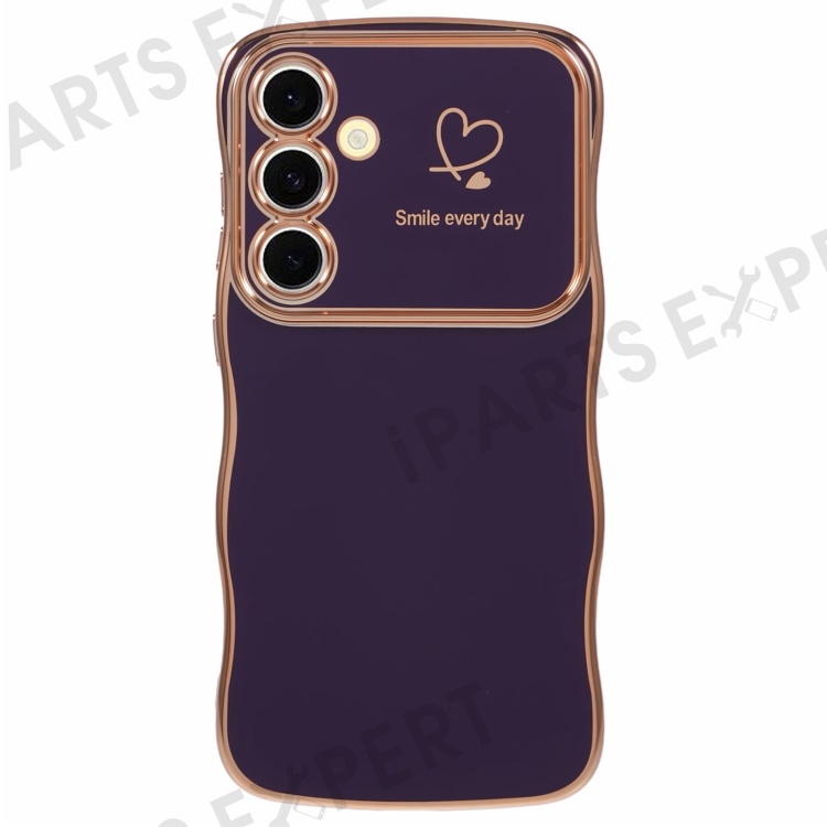 For Samsung Galaxy S25 Case Love Hearts TPU Phone Cover Curly Wave Frame Large Window - Dark Purple