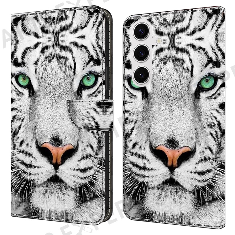 For Samsung Galaxy S25 Case Pattern Printed Protective Cover TPU+PU Leather Flip Phone Case - Tiger Face