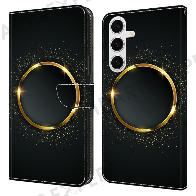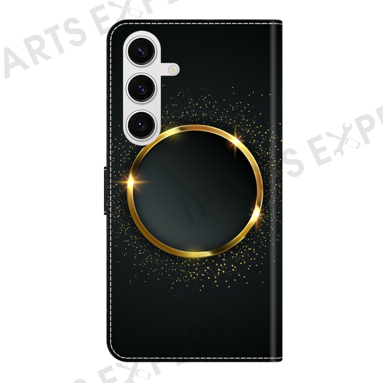 For Samsung Galaxy S25 Case PU Leather Wallet Phone Cover with Stand - Gold Ring