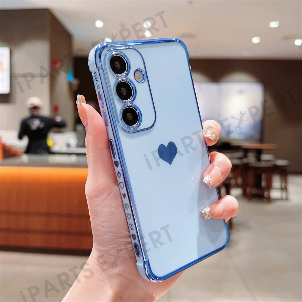 For Samsung Galaxy S25 Case TPU Phone Back Cover Electroplating Heart Pattern - Blue