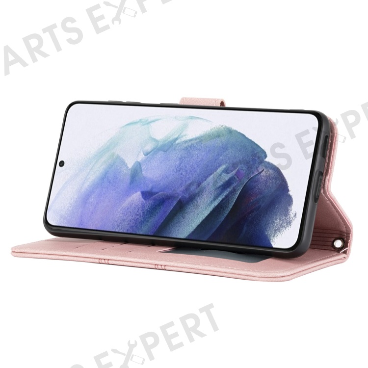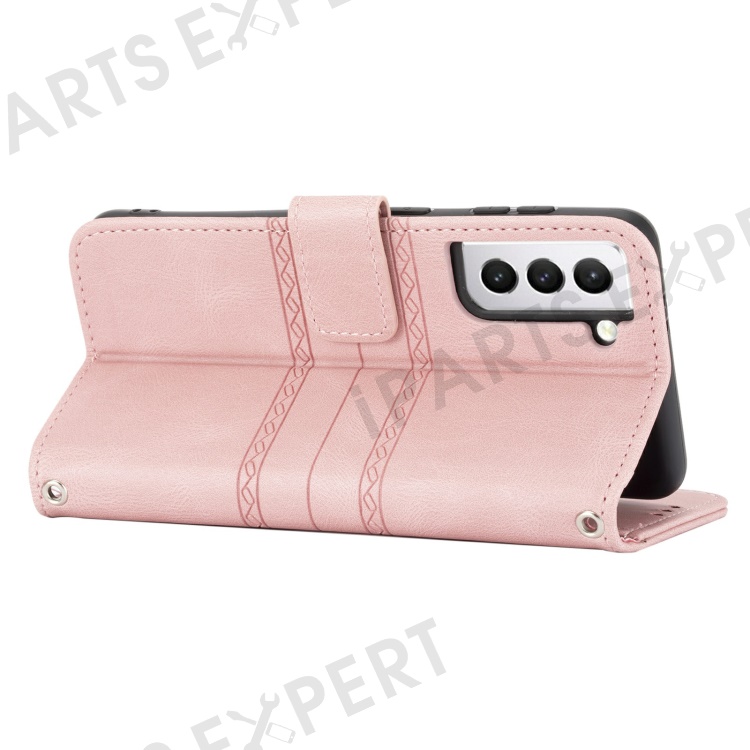 For Samsung Galaxy S25+ Case Wallet Skin-Touch Leather Imprinted Phone Cover - Pink