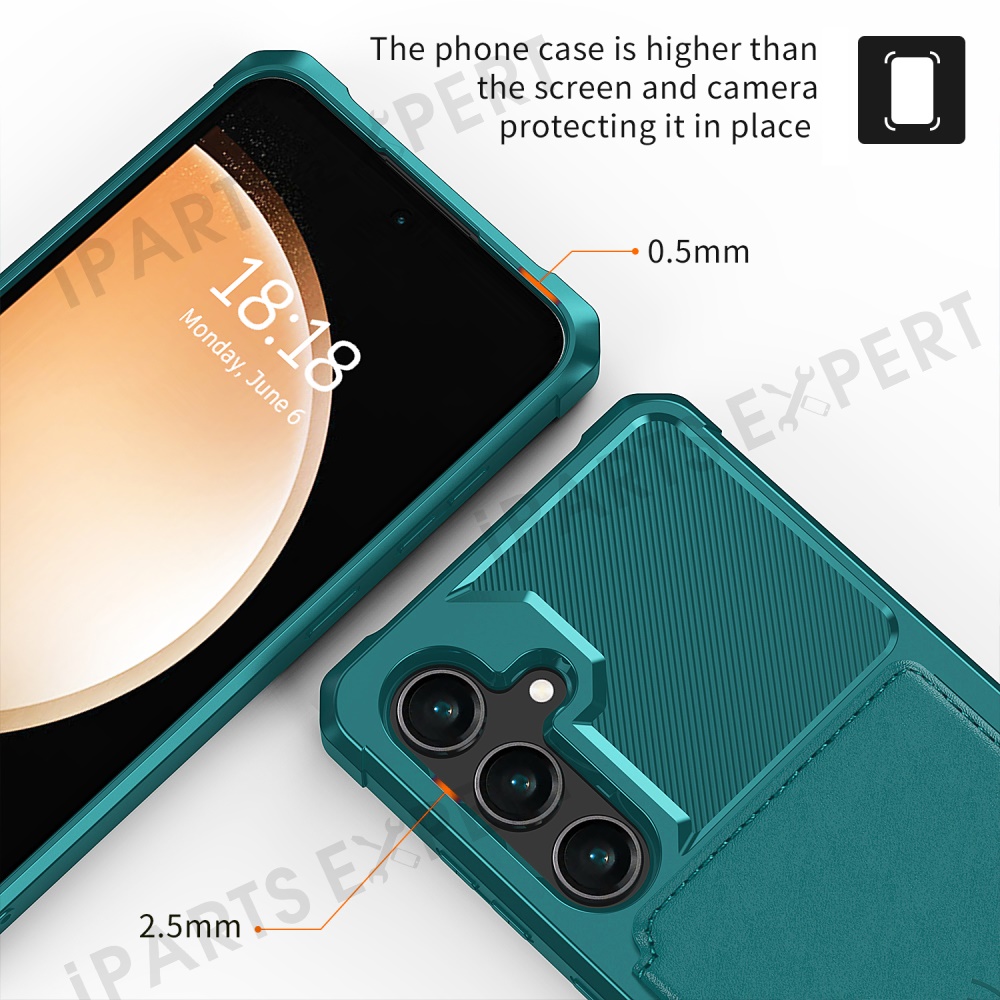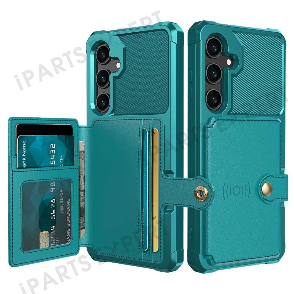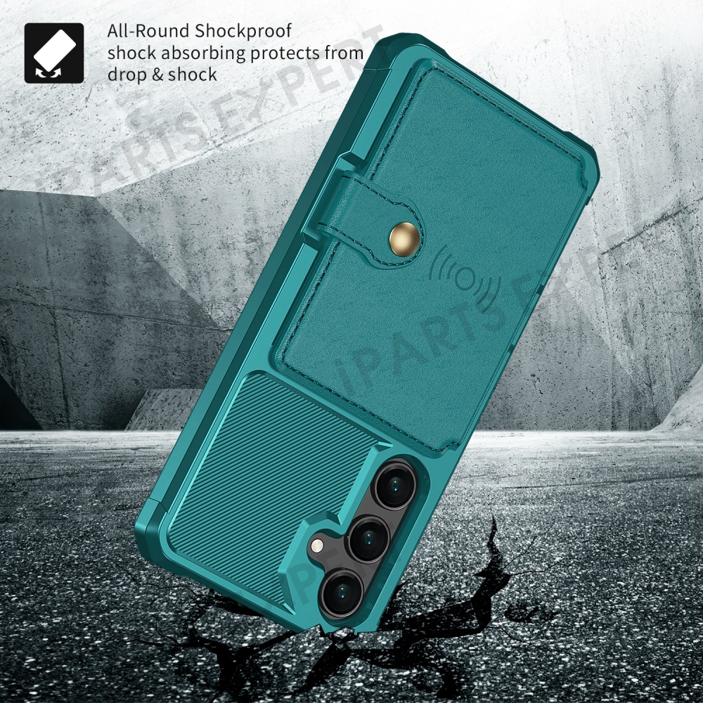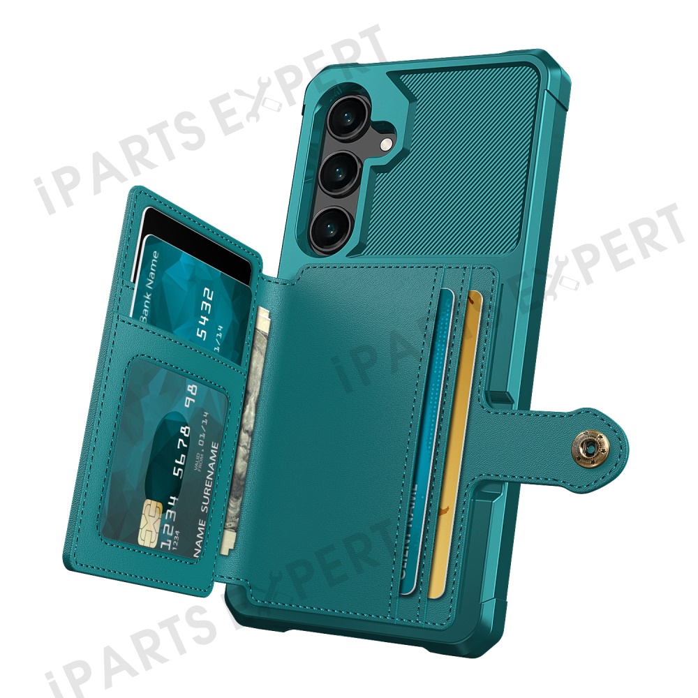 For Samsung Galaxy S25 Case with Card Holder PU Leather + TPU Phone Back Cover - Green