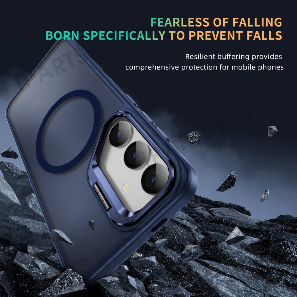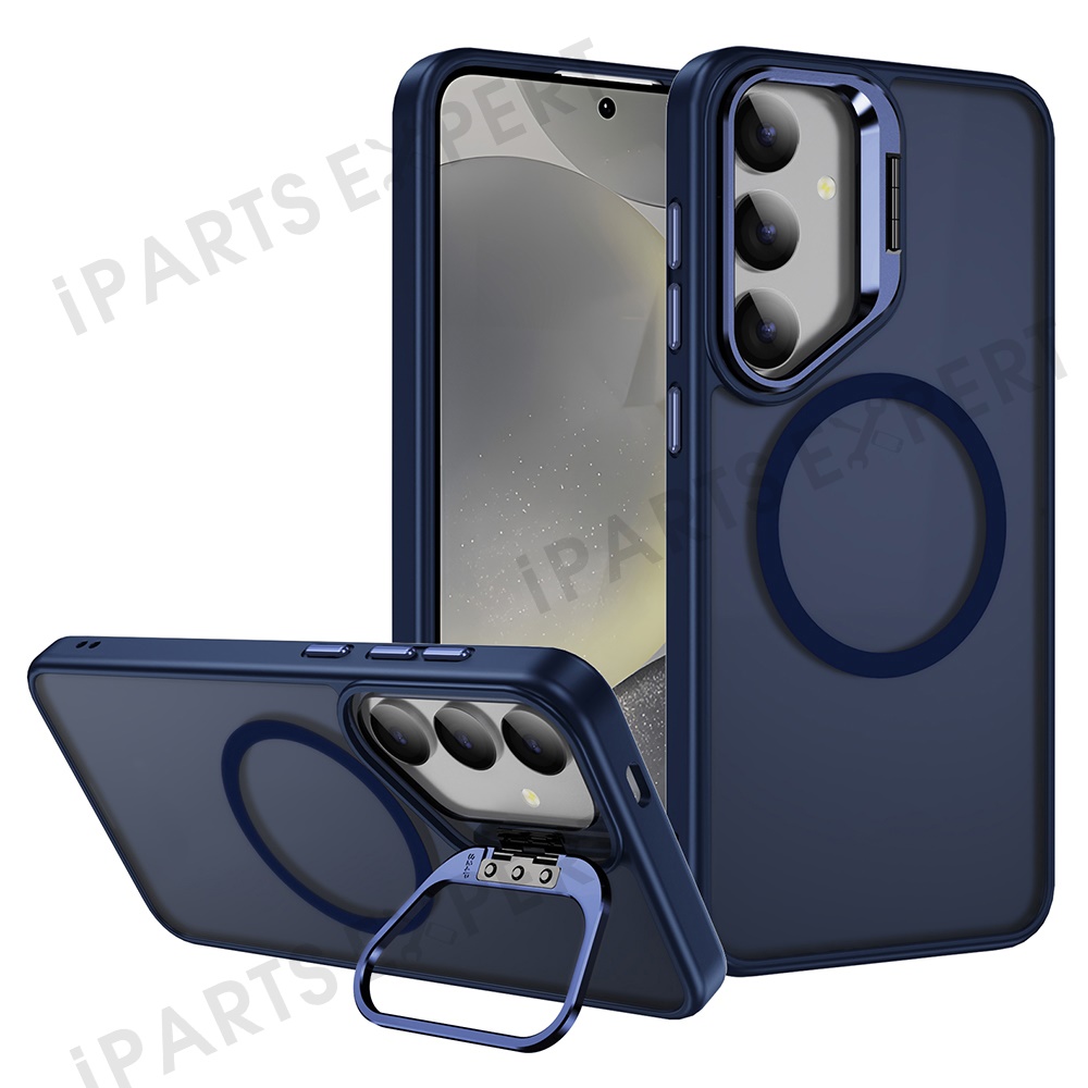 For Samsung Galaxy S25+ Magnetic Case with Lens Kickstand Skin-Touch PC + TPU Phone Cover - Sapphire