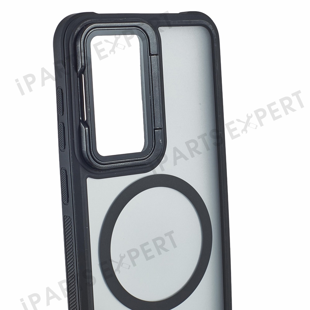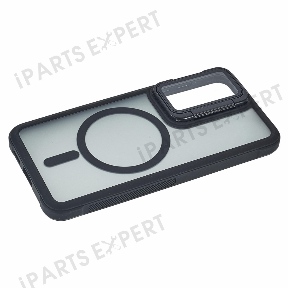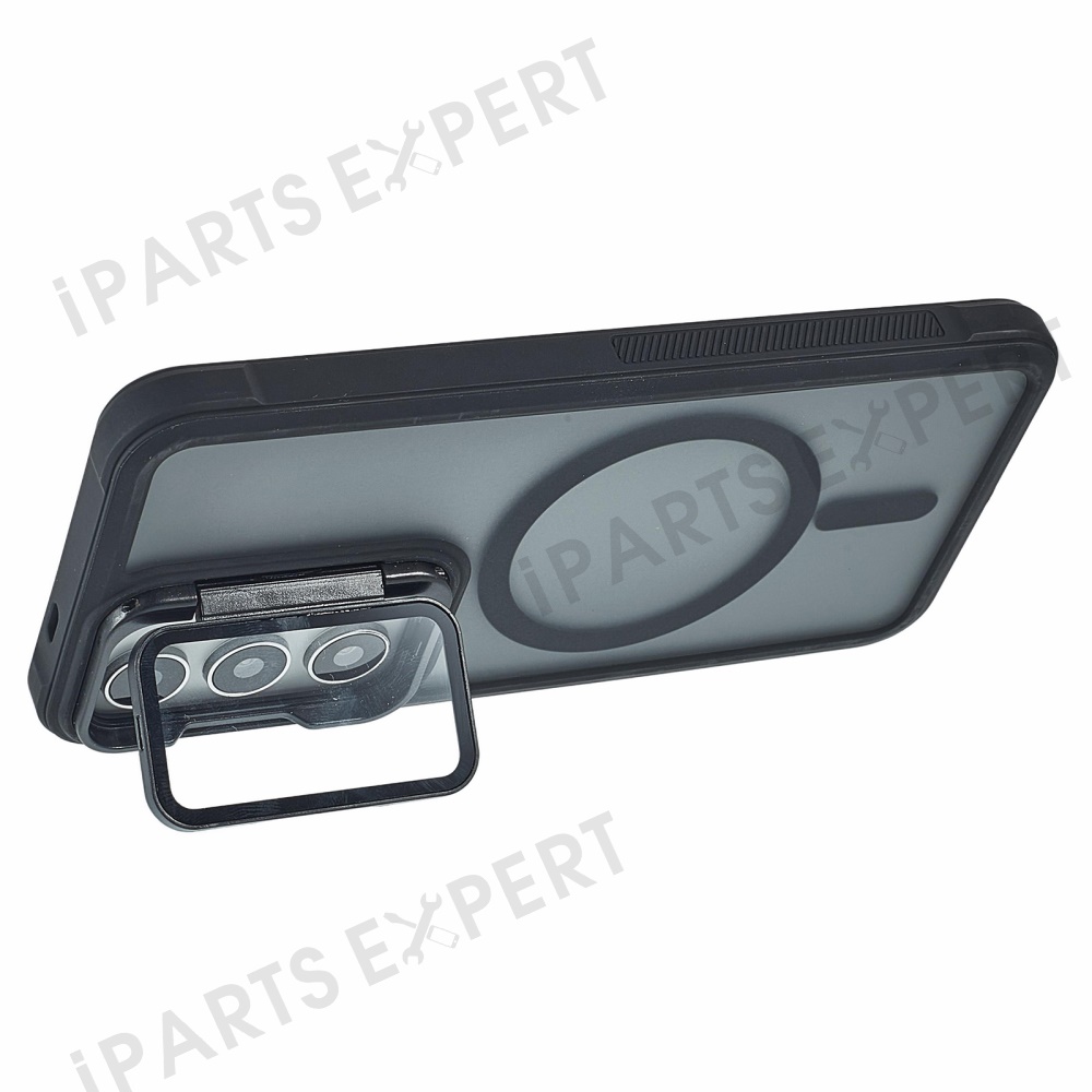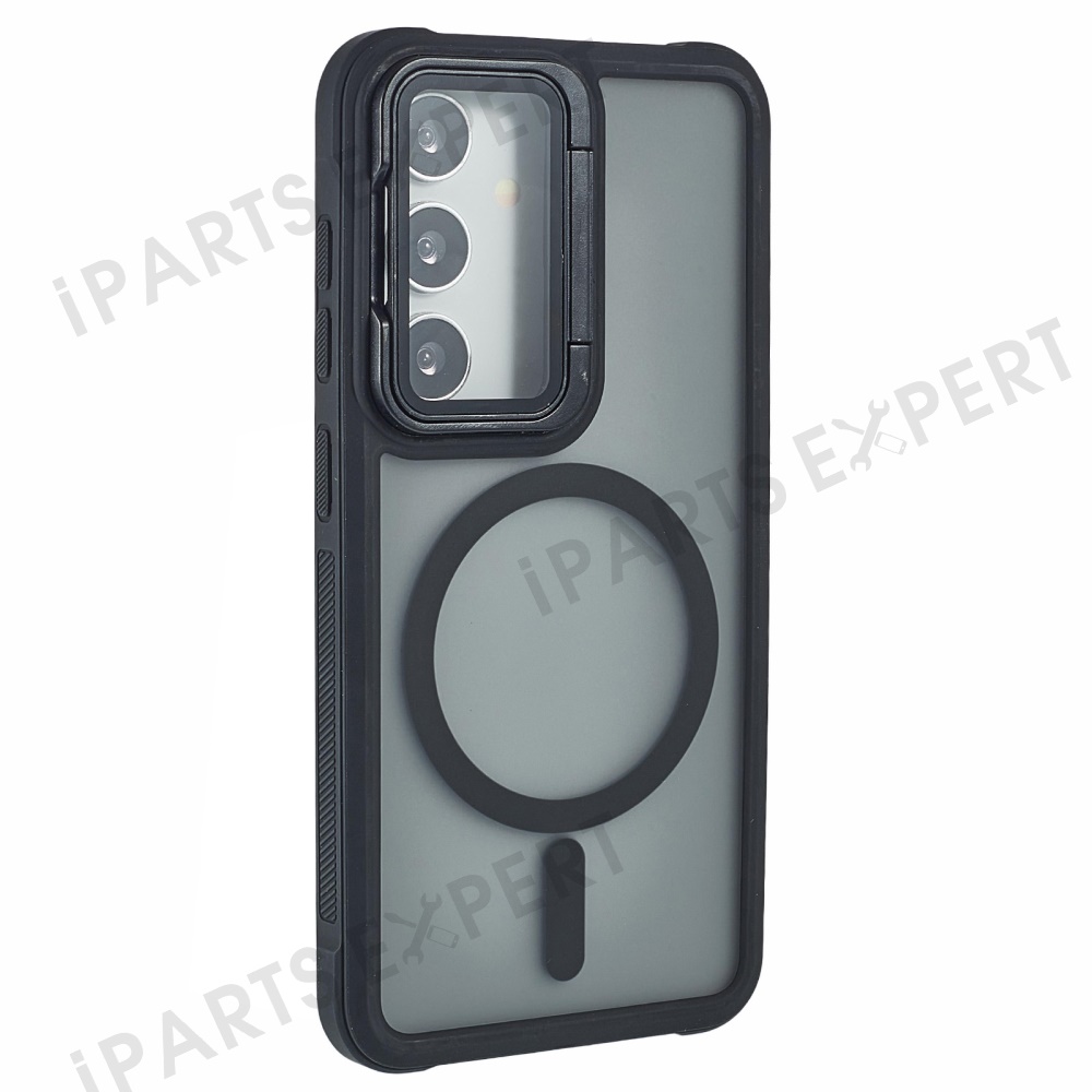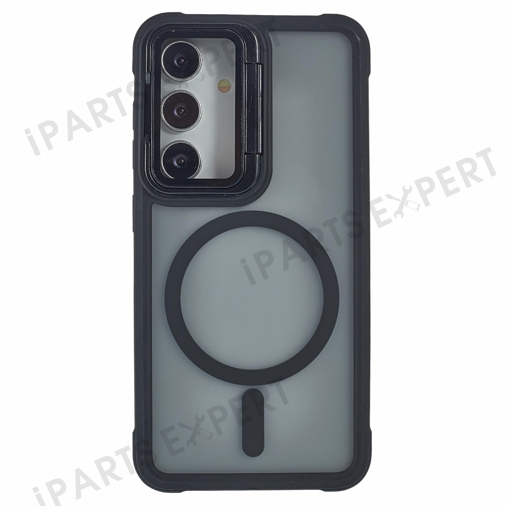 For Samsung Galaxy S25 / S24 Magnetic Case Lens Cover Kickstand Matte Back Cover - Black