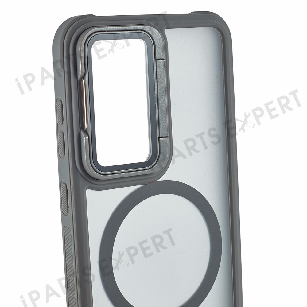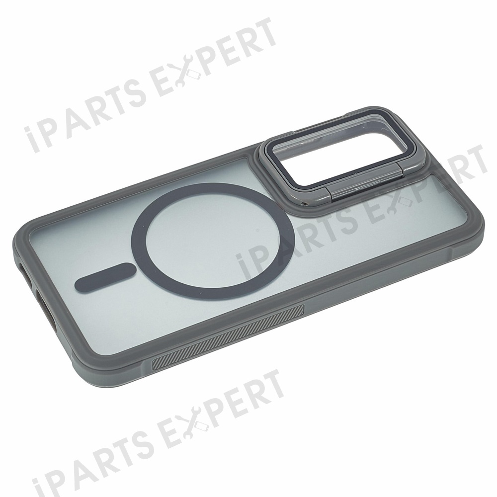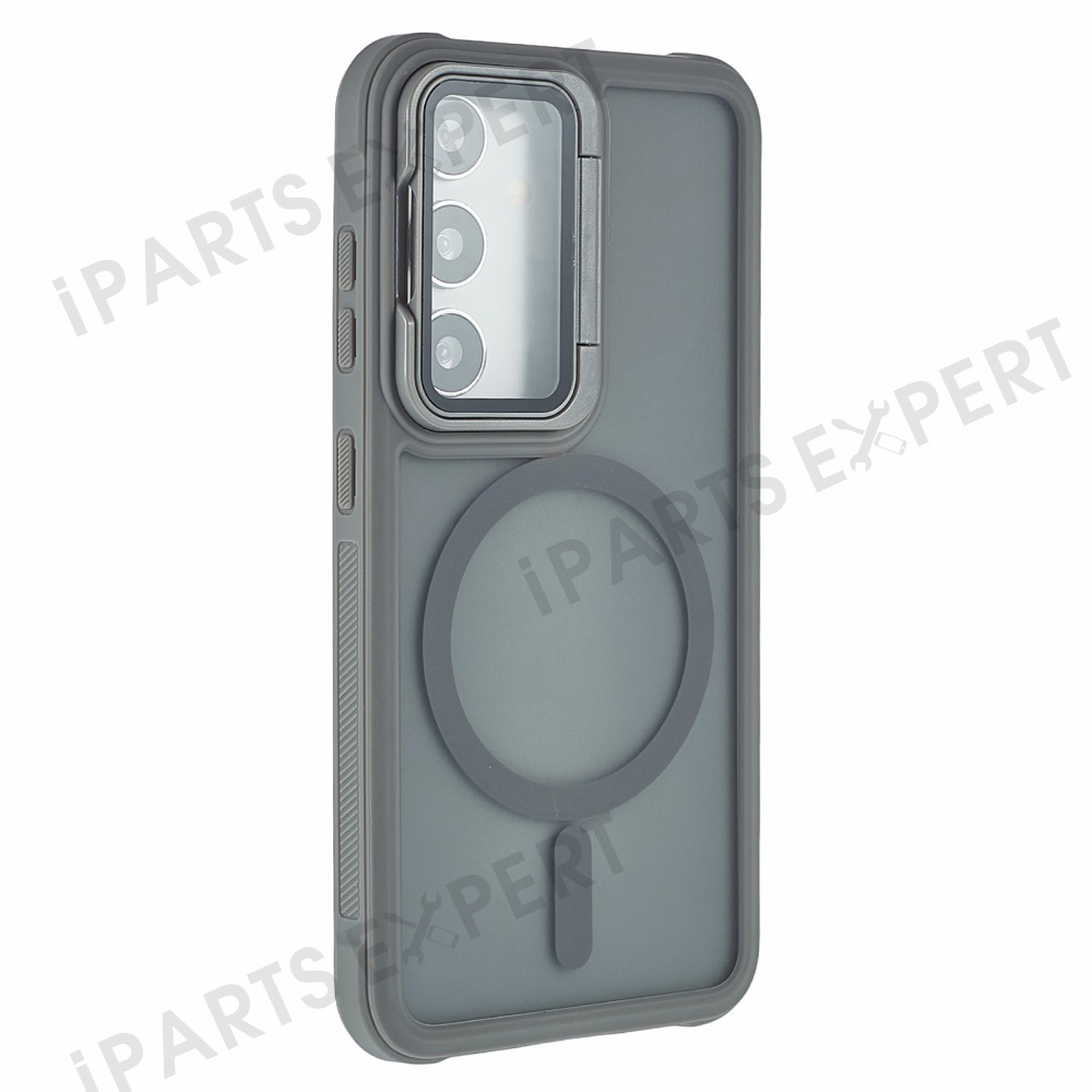 For Samsung Galaxy S25 / S24 Magnetic Case Lens Cover Kickstand Matte Back Cover - Grey