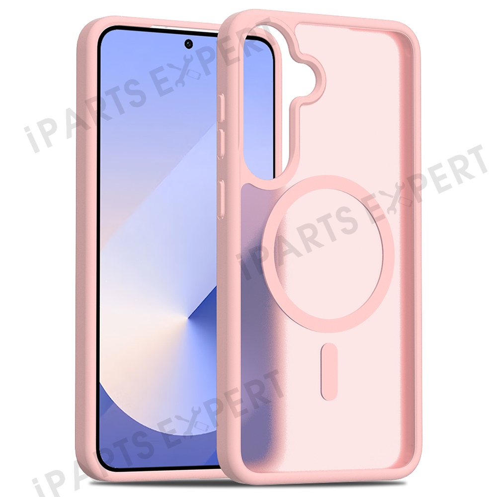 For Samsung Galaxy S25+ / S24+ Magnetic Case TPU Frame Acrylic Back Phone Cover Skin Touch - Pink