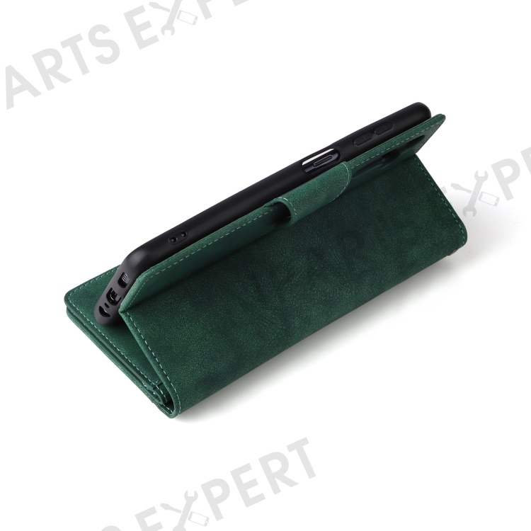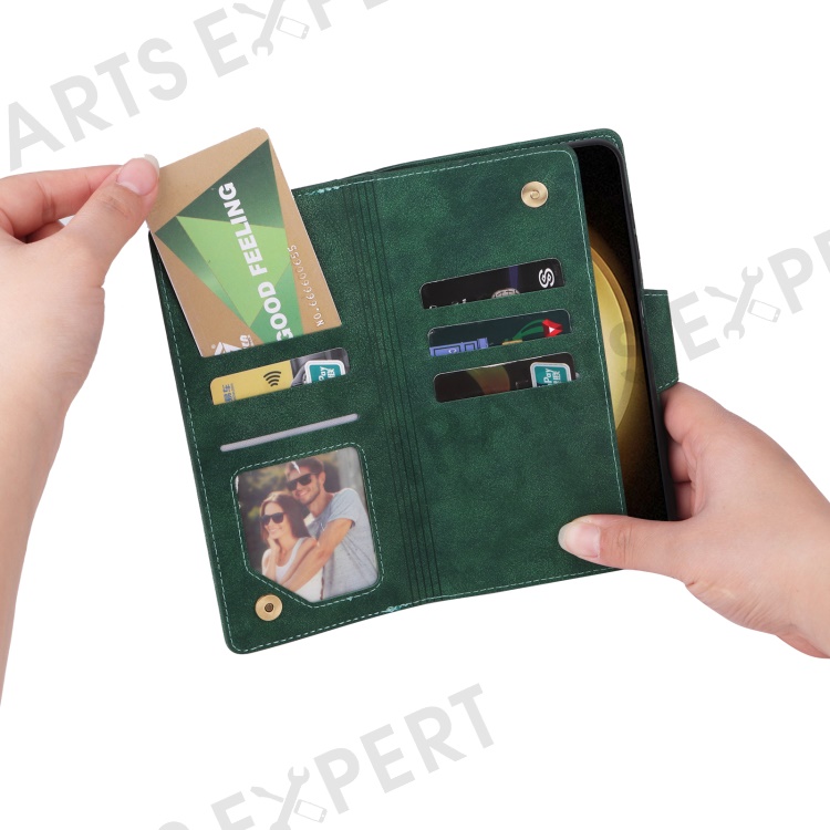 For Samsung Galaxy S25+ / S24+ Case Zipper Wallet Leather Stand Phone Cover Rivet Decor - Green