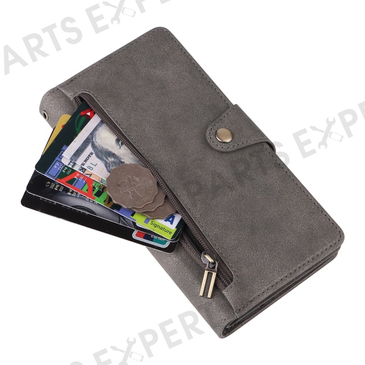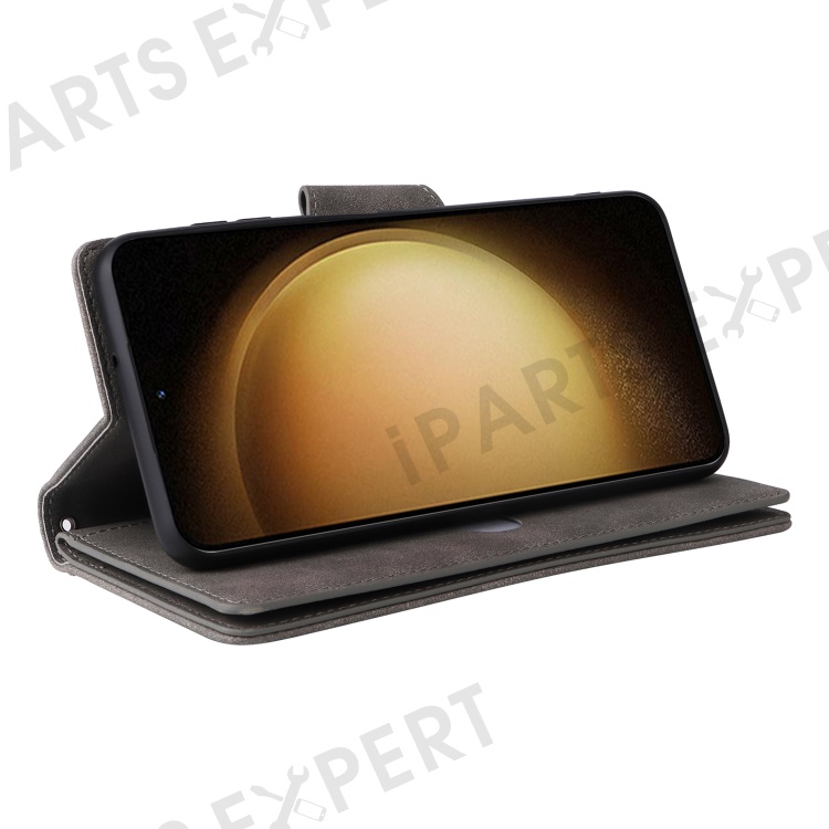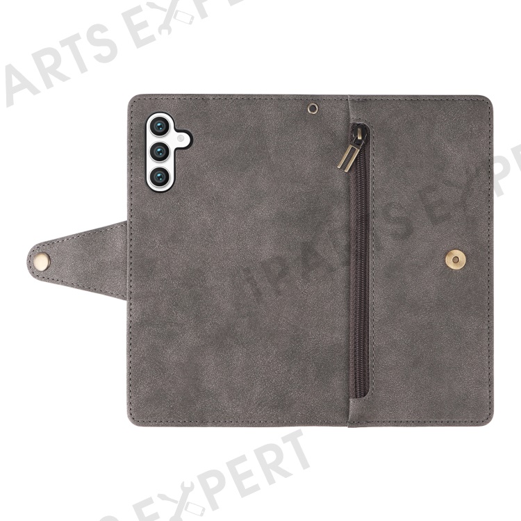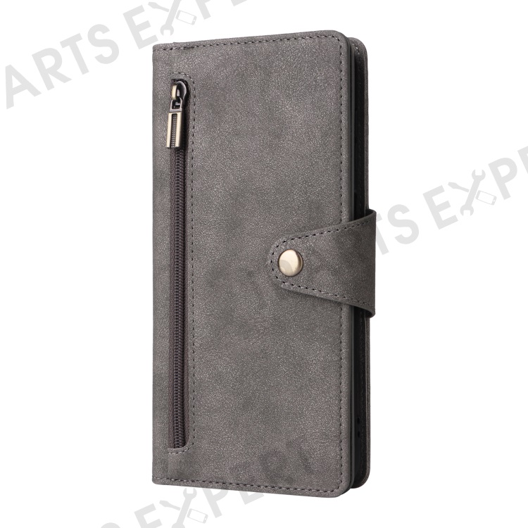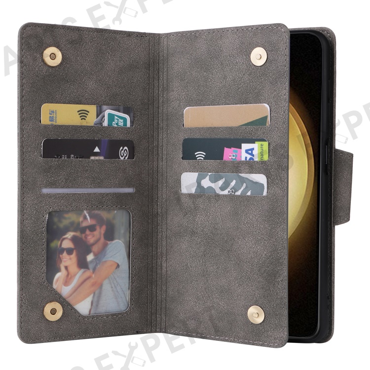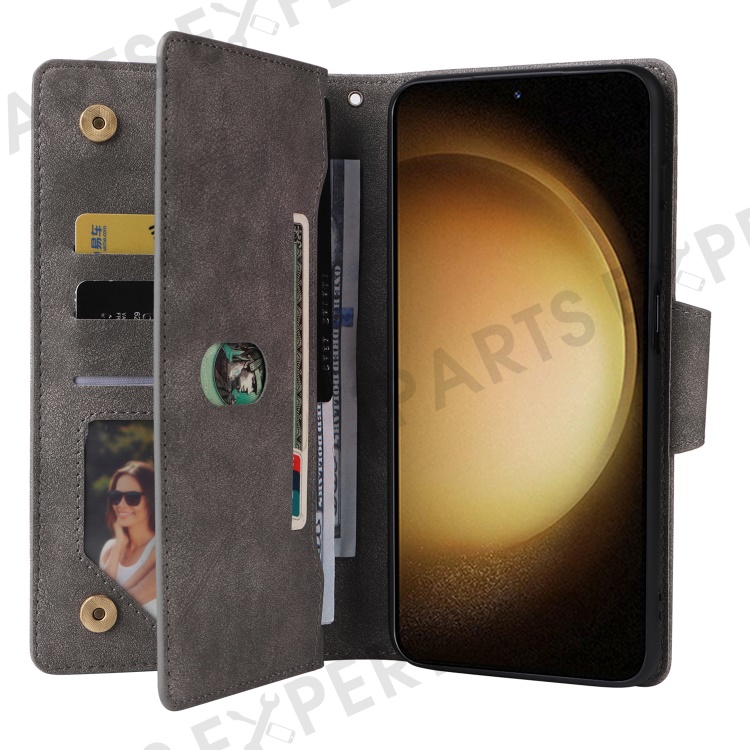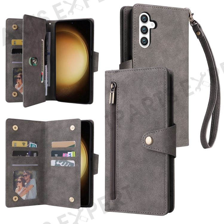 For Samsung Galaxy S25 / S24 Case Zipper Wallet Leather Stand Phone Cover Rivet Decor - Grey