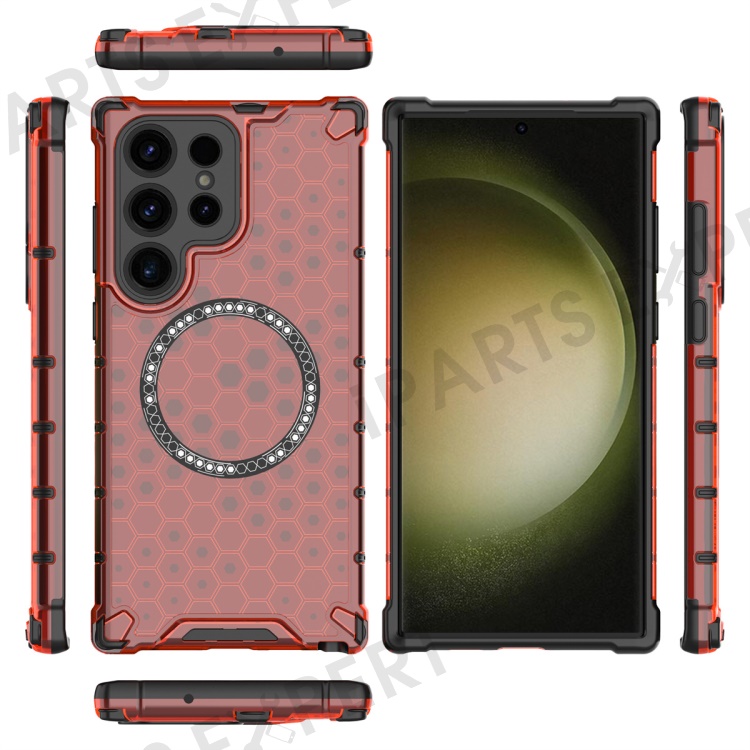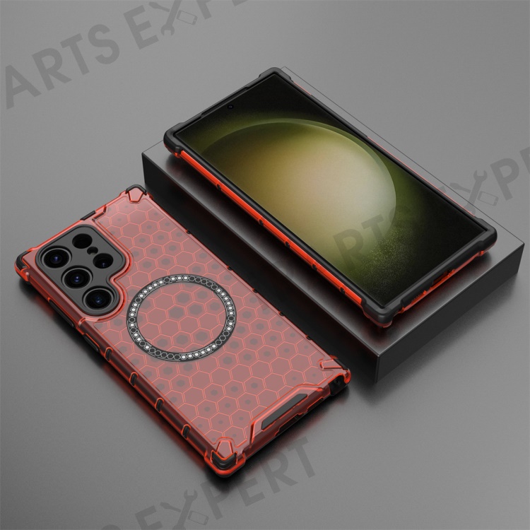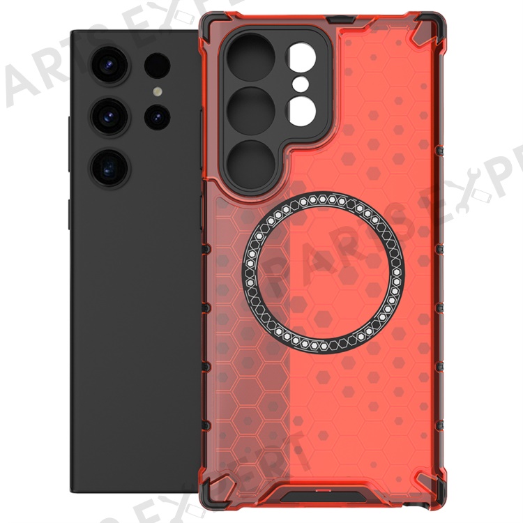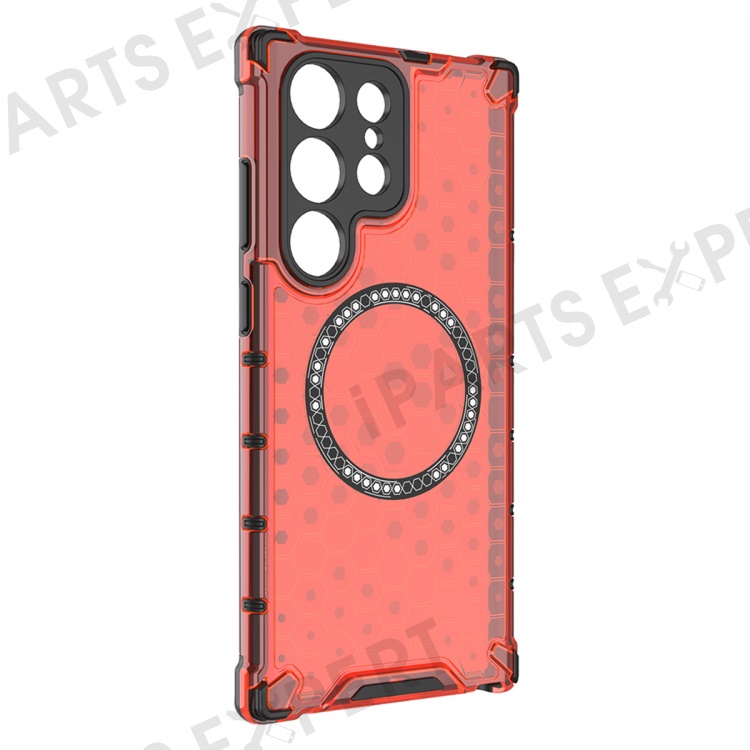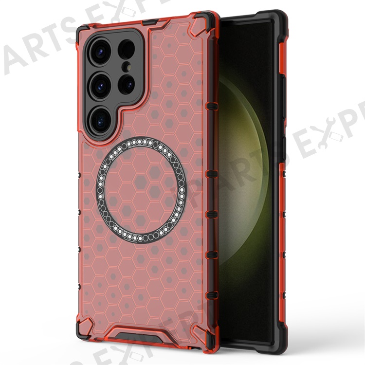 For Samsung Galaxy S25 Ultra Magnetic Case Honeycomb Design TPU+PC Phone Cover - Red