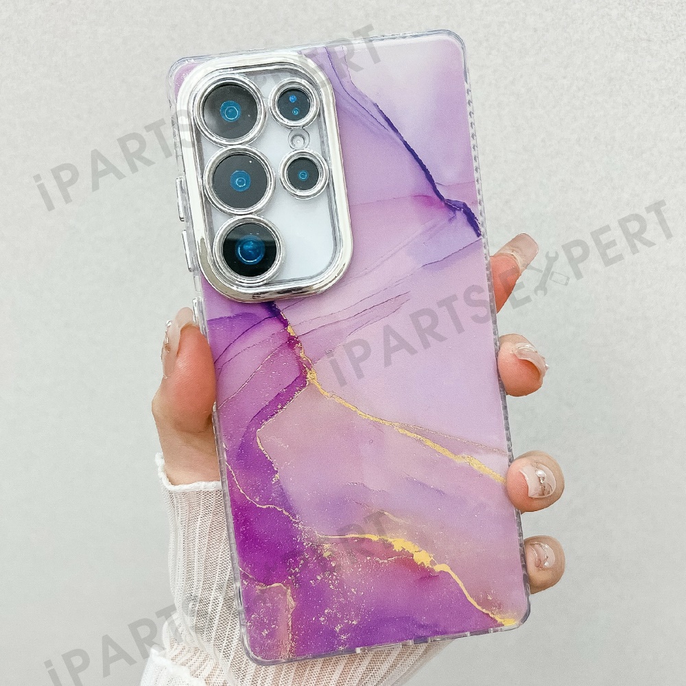 For Samsung Galaxy S25 Ultra Case IMD Marble Pattern Electroplated Protective Phone Cover - M15