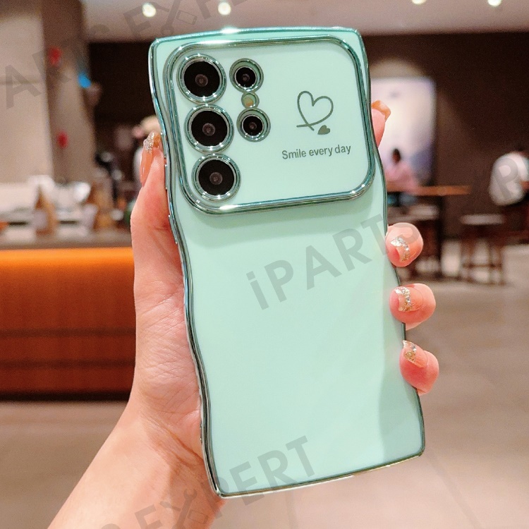 For Samsung Galaxy S25 Ultra Case Love Hearts TPU Phone Cover Curly Wave Frame Large Window - Green