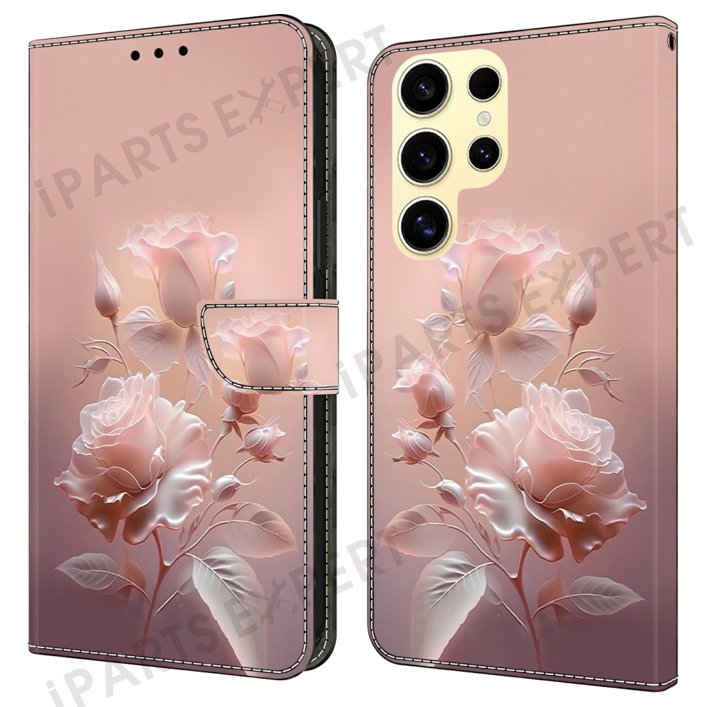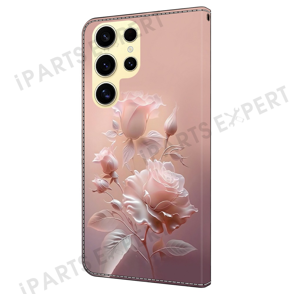 For Samsung Galaxy S25 Ultra Case Pattern Printing Anti-Drop Leather Flip Wallet Phone Cover - Ceramic Rose