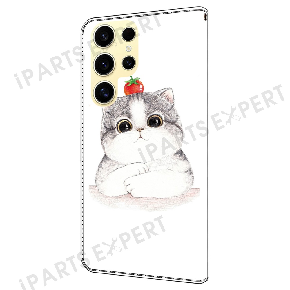 For Samsung Galaxy S25 Ultra Case Pattern Printing Anti-Drop Leather Flip Wallet Phone Cover - Cute Cat