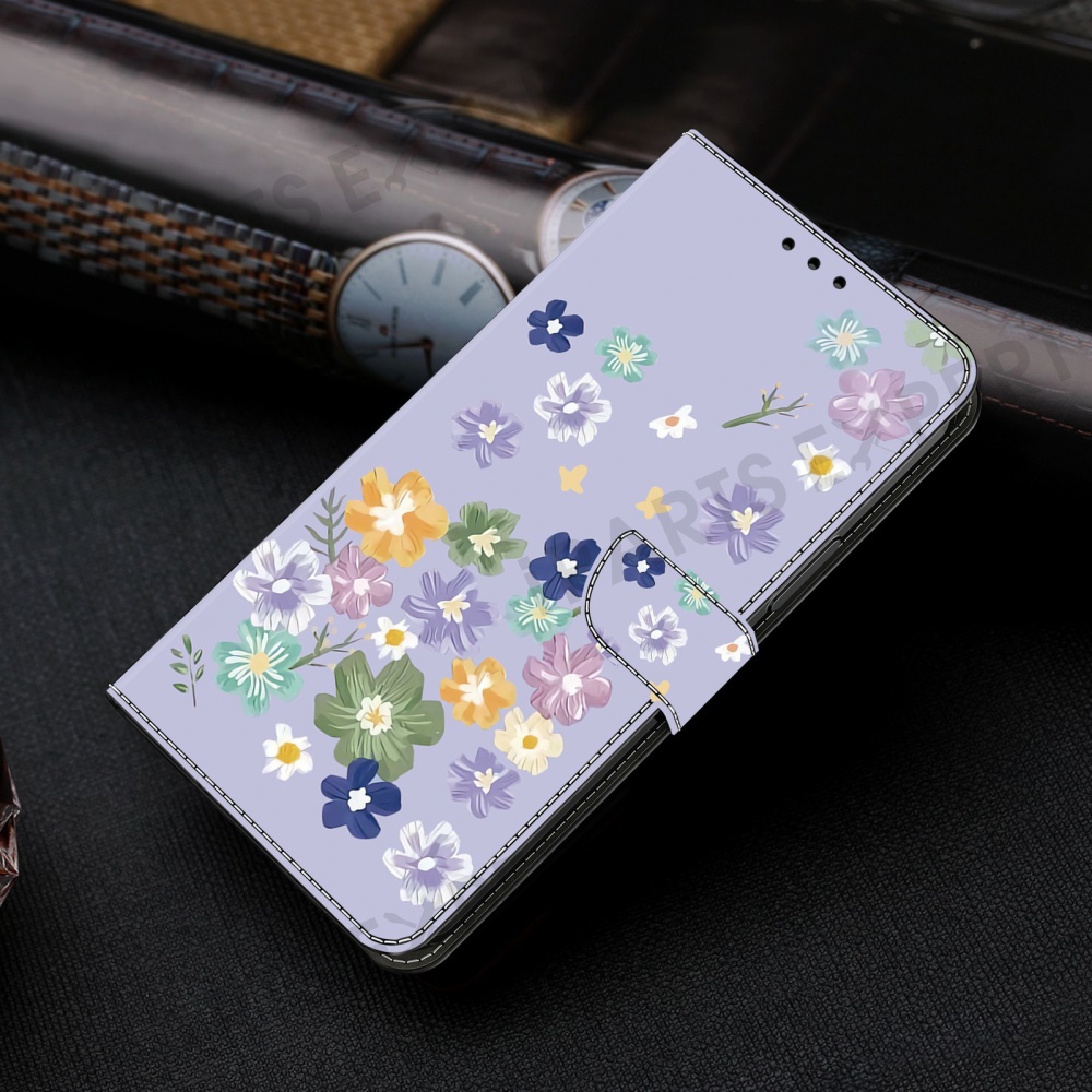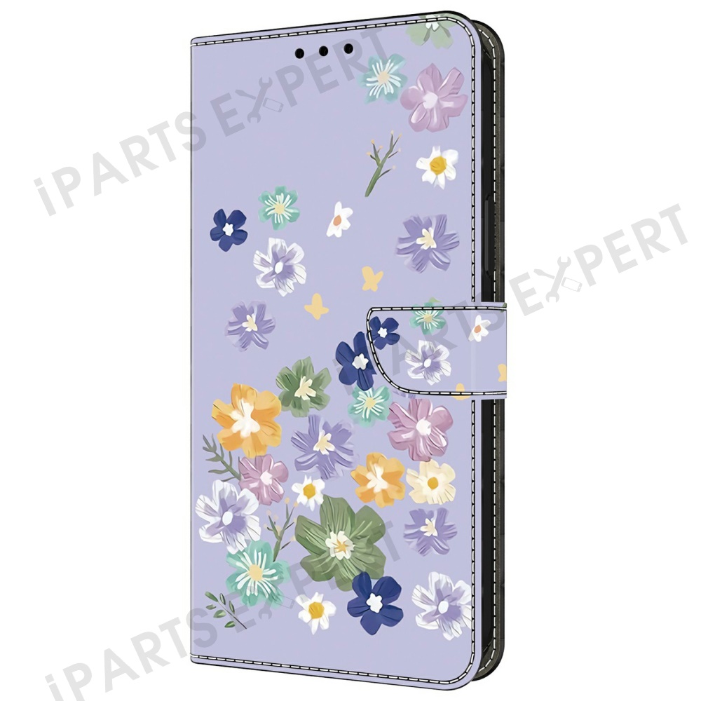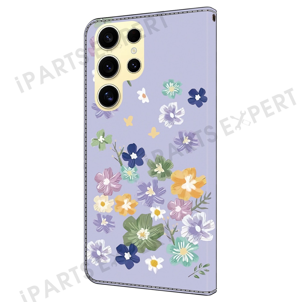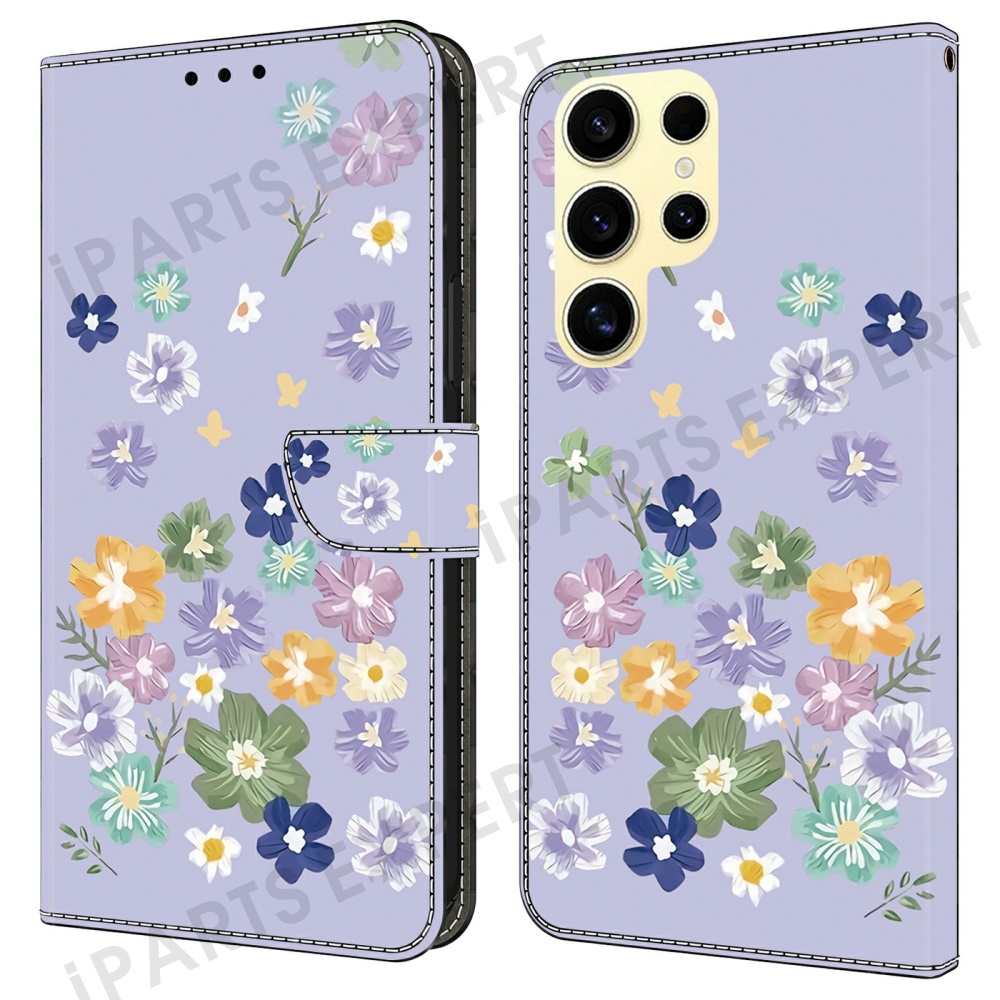 For Samsung Galaxy S25 Ultra Case Pattern Printing Anti-Drop Leather Flip Wallet Phone Cover - Purple Floral