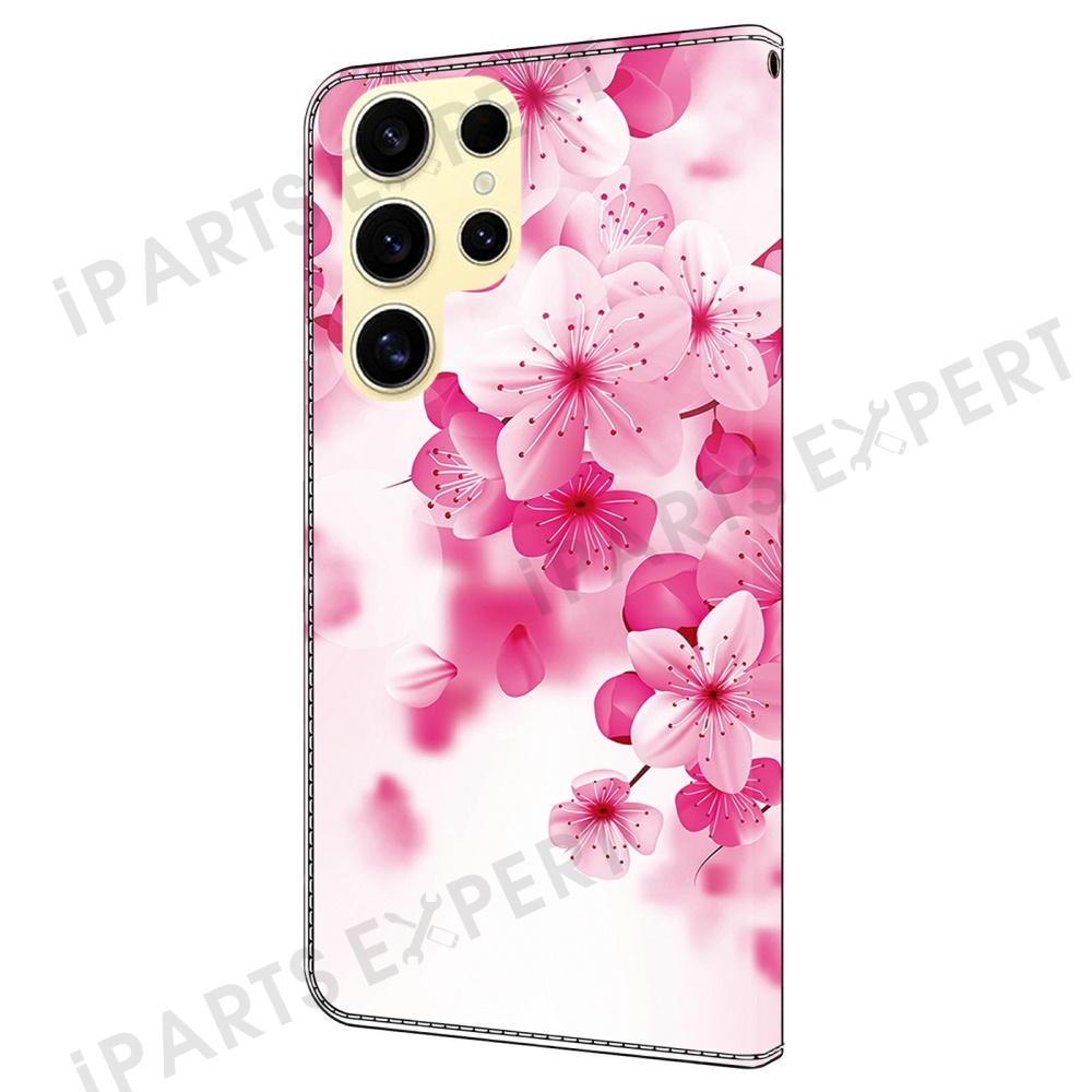 For Samsung Galaxy S25 Ultra Case Pattern Printing Anti-Drop Leather Flip Wallet Phone Cover - Red Flowers