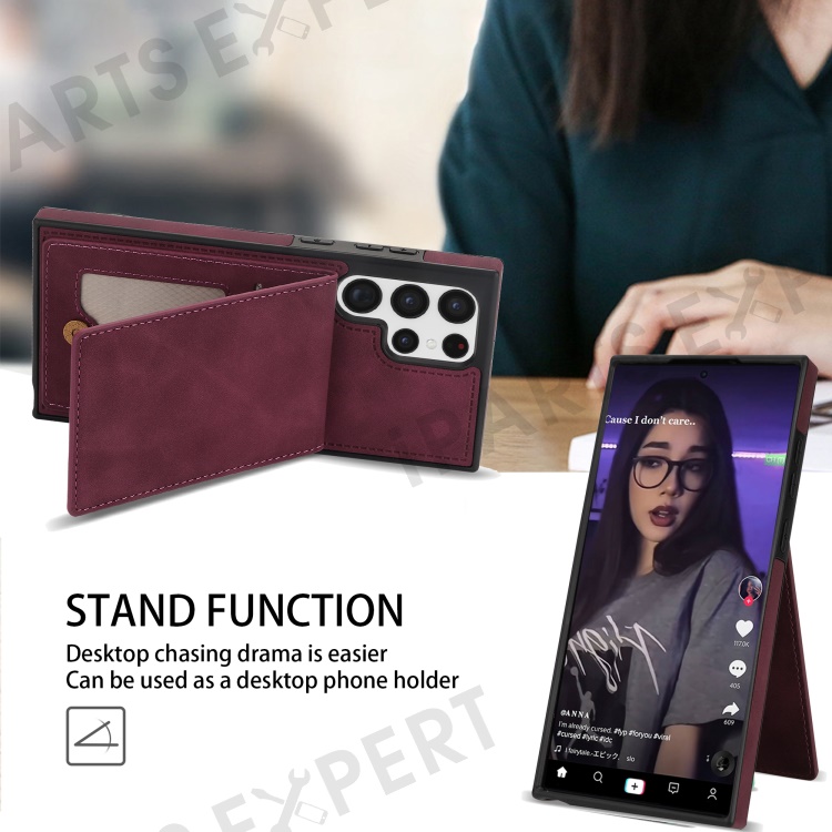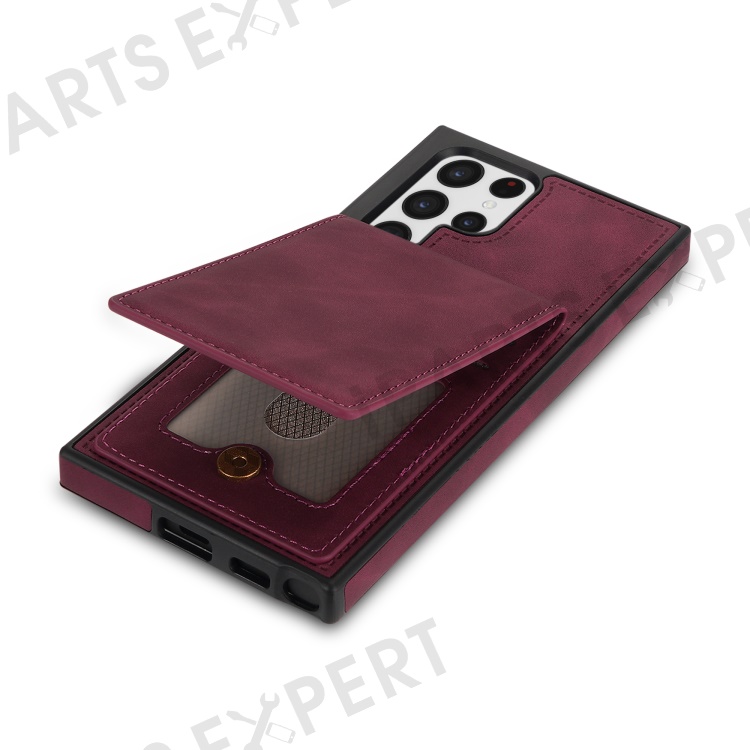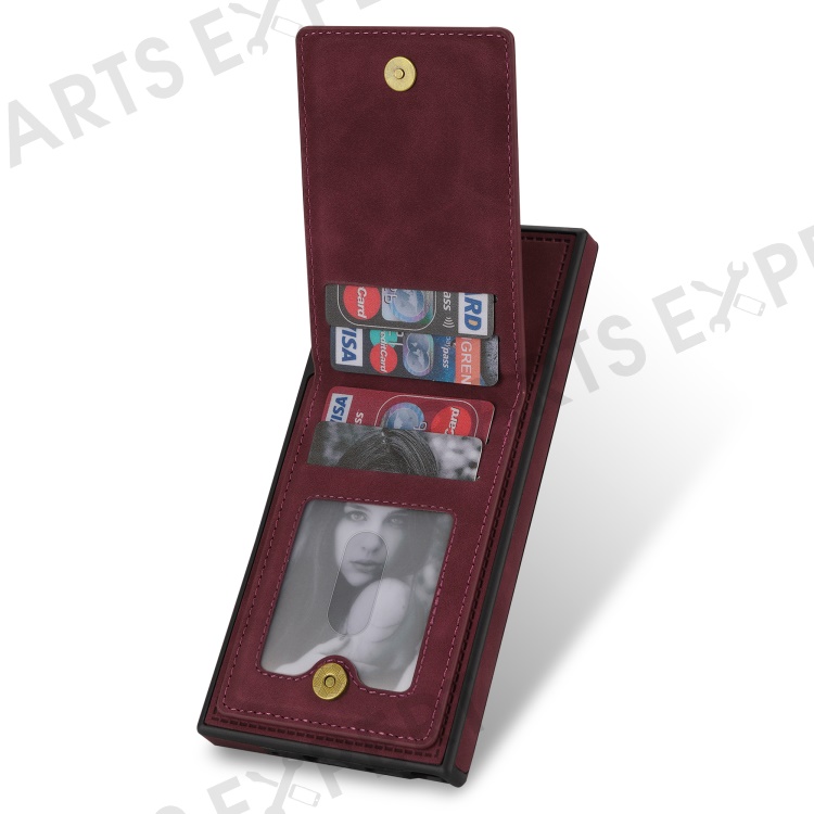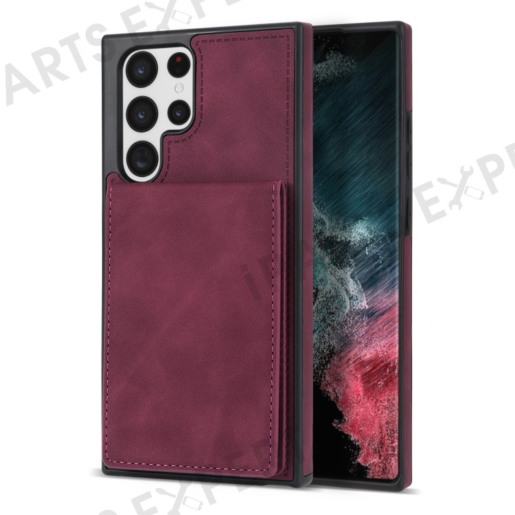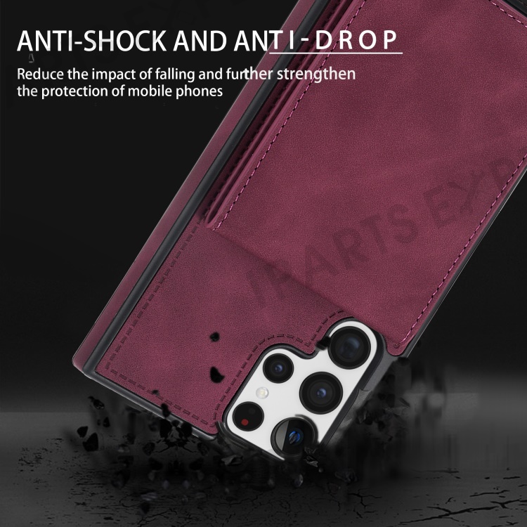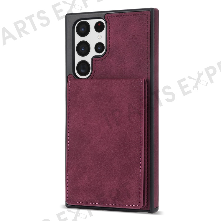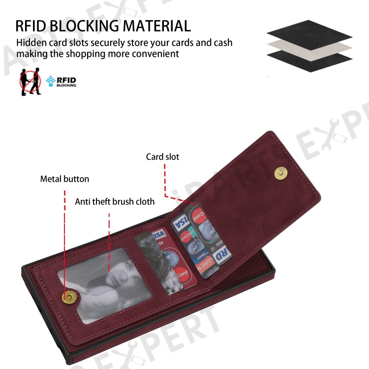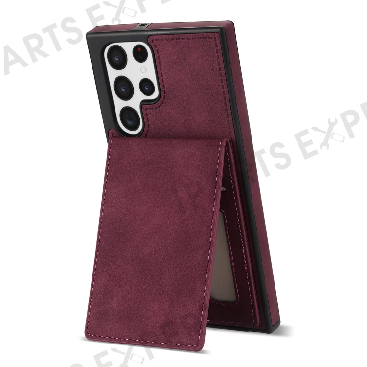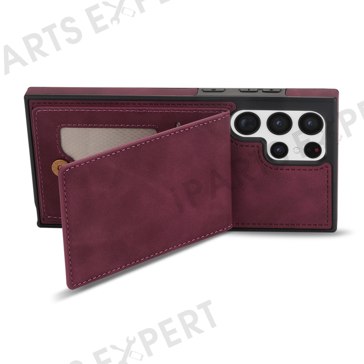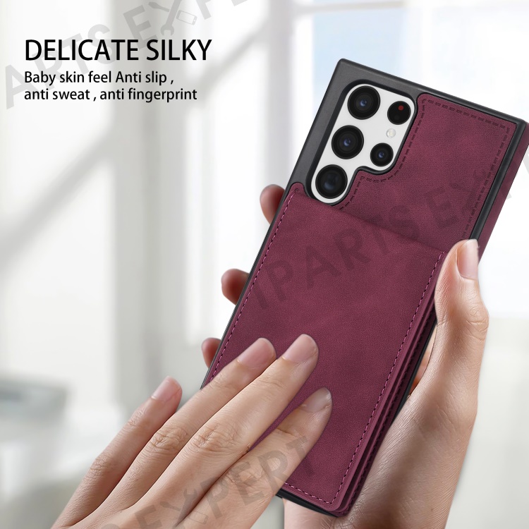 For Samsung Galaxy S25 Ultra Case RFID Blocking Card Slots TPU+PU Leather Phone Cover - Wine Red
