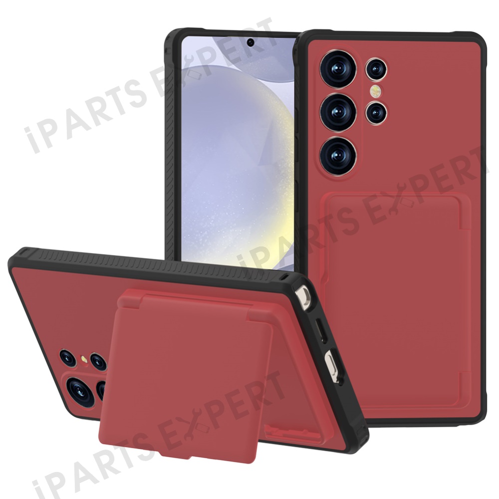 For Samsung Galaxy S25 Ultra Case with Card Holder Hidden Mirror PC + TPU Kickstand Phone Cover - Red