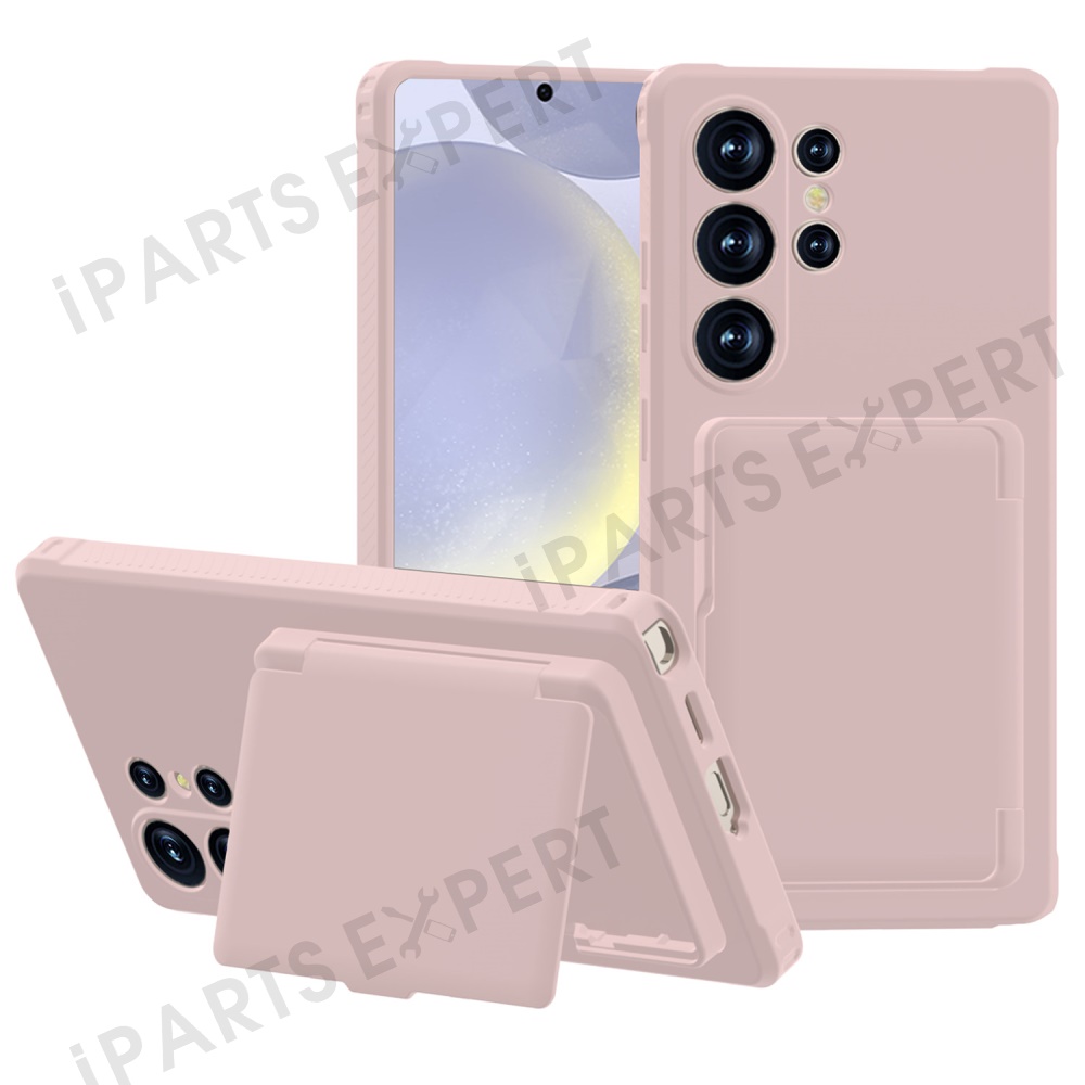 For Samsung Galaxy S25 Ultra Case with Card Holder Hidden Mirror PC + TPU Kickstand Phone Cover - Rose Gold