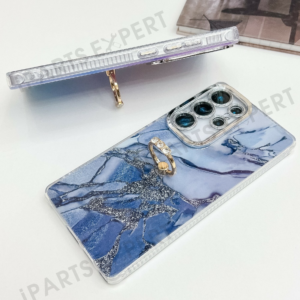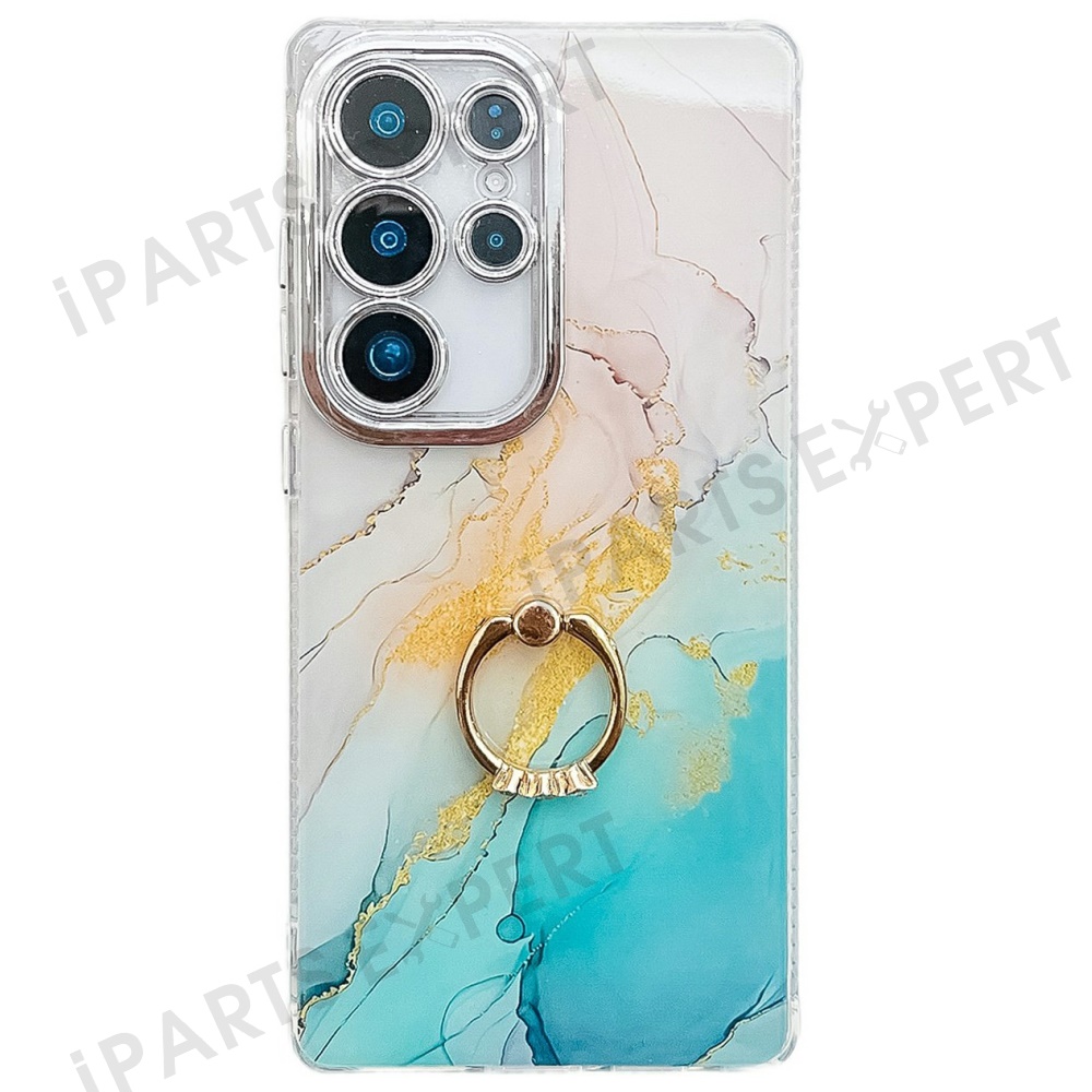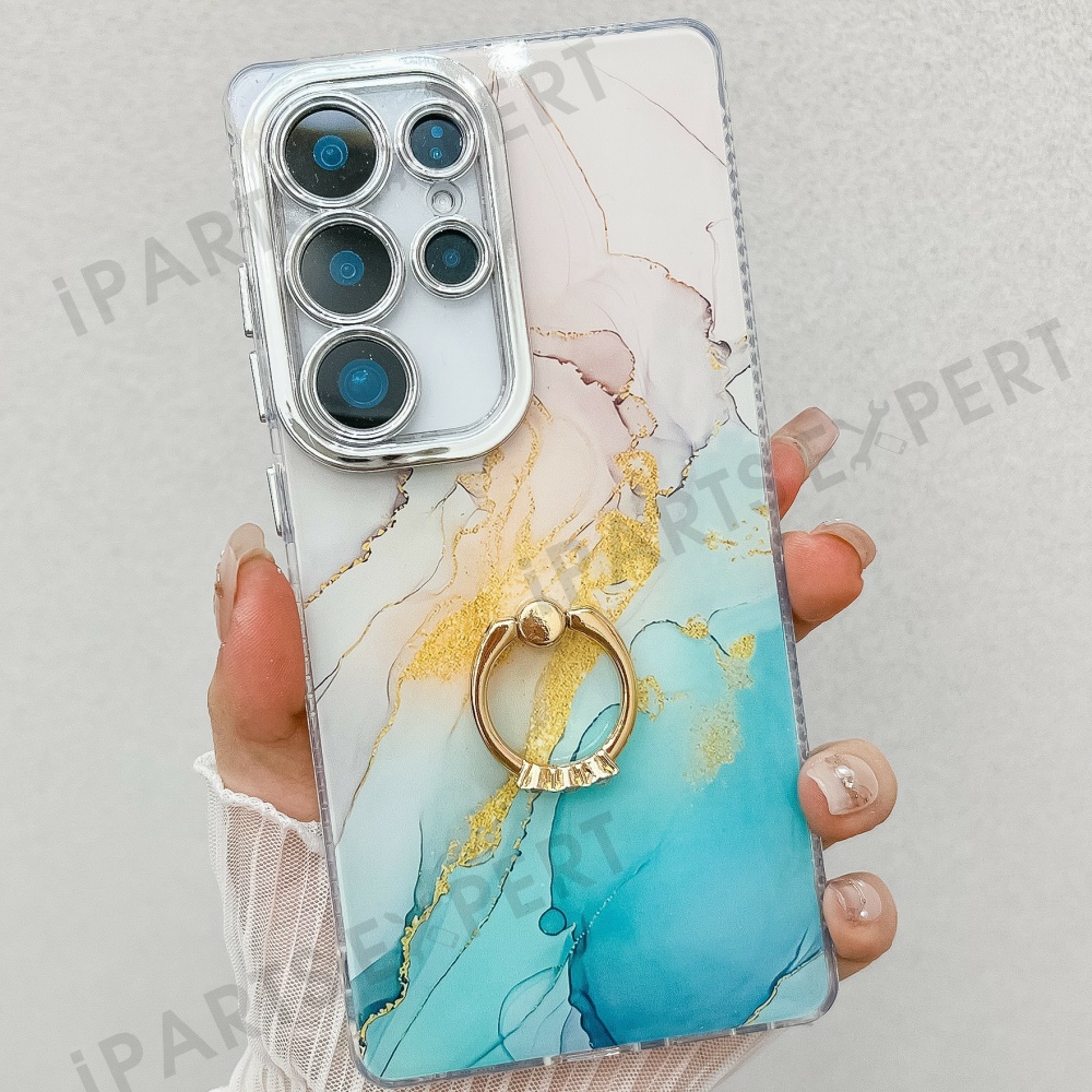 For Samsung Galaxy S25 Ultra Case with Kickstand IMD Marble Pattern Electroplated Phone Cover - S13