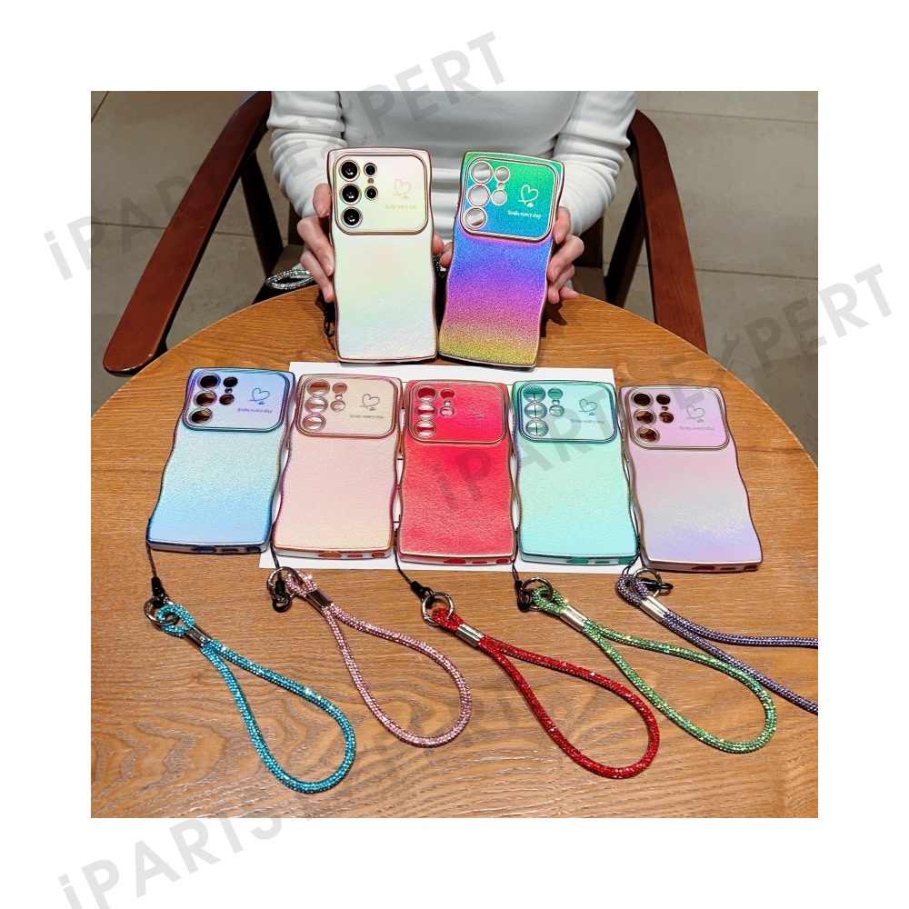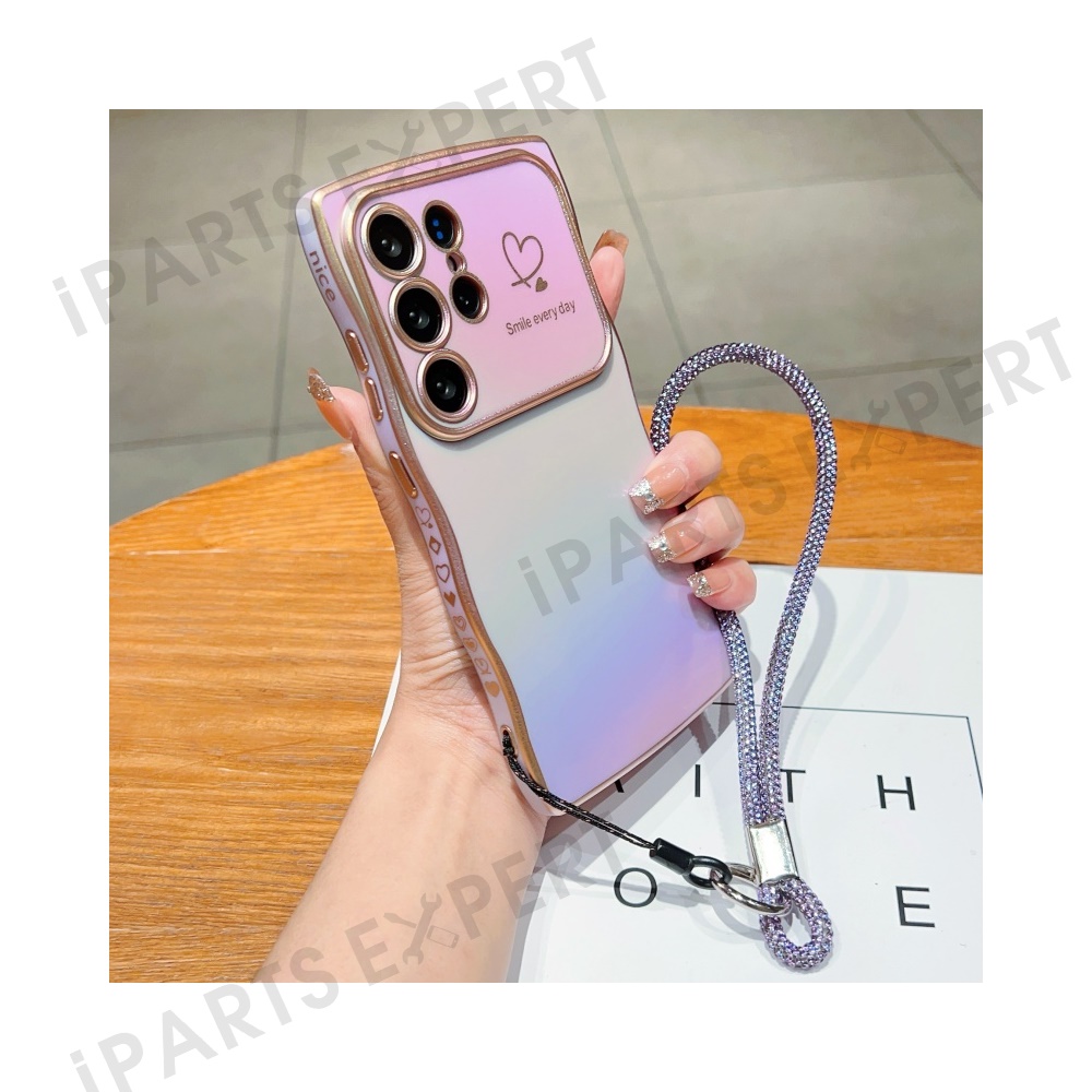 For Samsung Galaxy S25 Ultra Case with Strap TPU Phone Back Cover Dazzling Design Curly Shape Love Heart - Colorful Purple