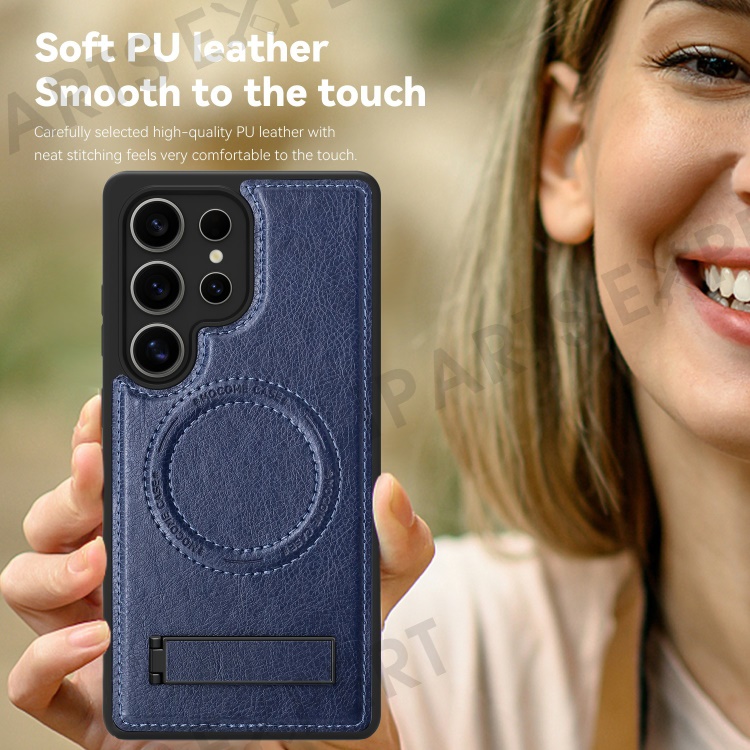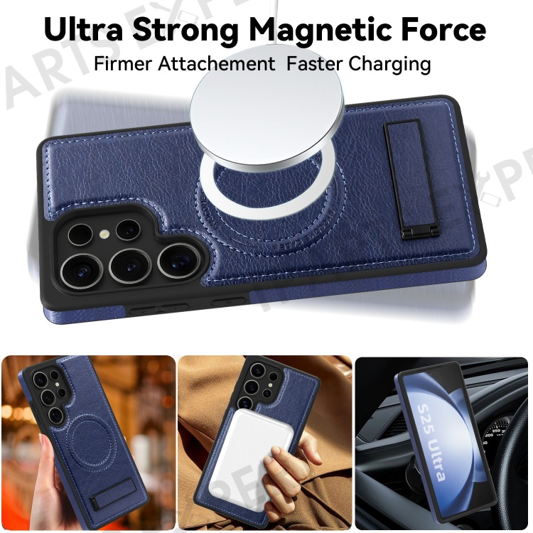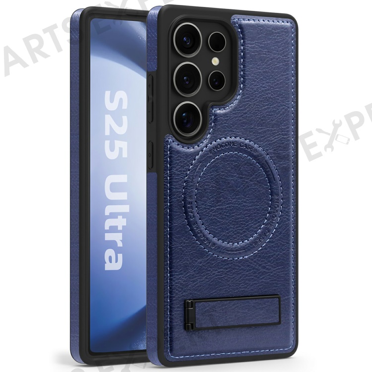 For Samsung Galaxy S25 Ultra Magnetic Case with Folded Kickstand PC Silicone Leather Phone Back Cover - Sapphire