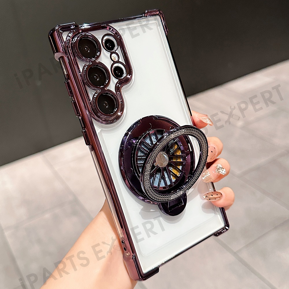 For Samsung Galaxy S25 Ultra Phone Case Gyroscope Kickstand Electroplating TPU PC Mobile Cover - Purple