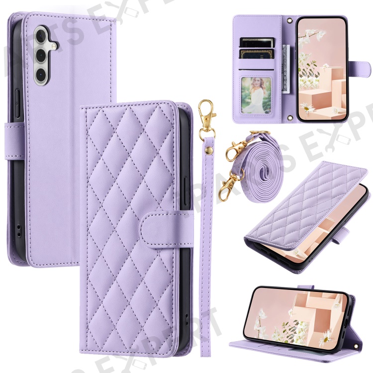 For Samsung Galaxy S25+ Wallet Case Rhombus Grid PU Leather Phone Cover - Purple