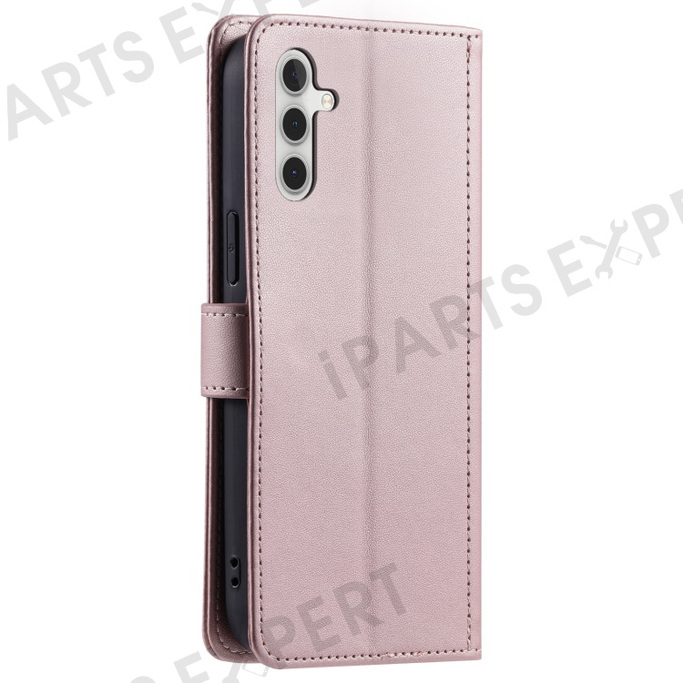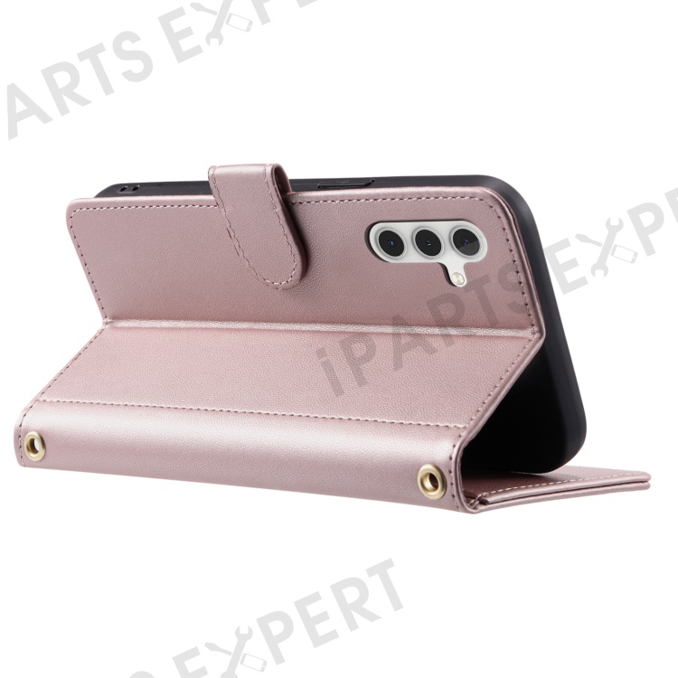 For Samsung Galaxy S25+ Wallet Case Rhombus Grid PU Leather Phone Cover - Rose Gold