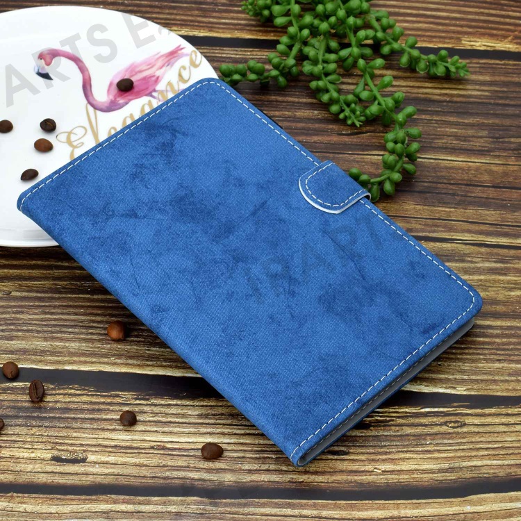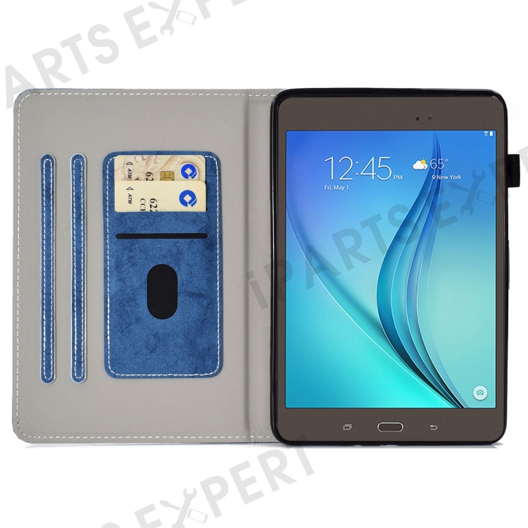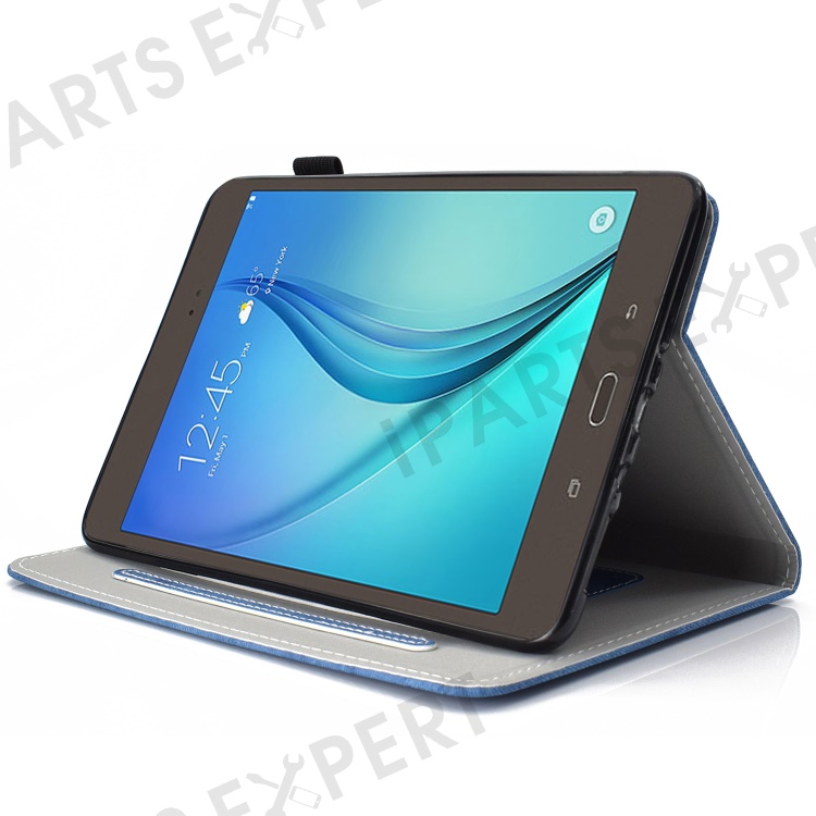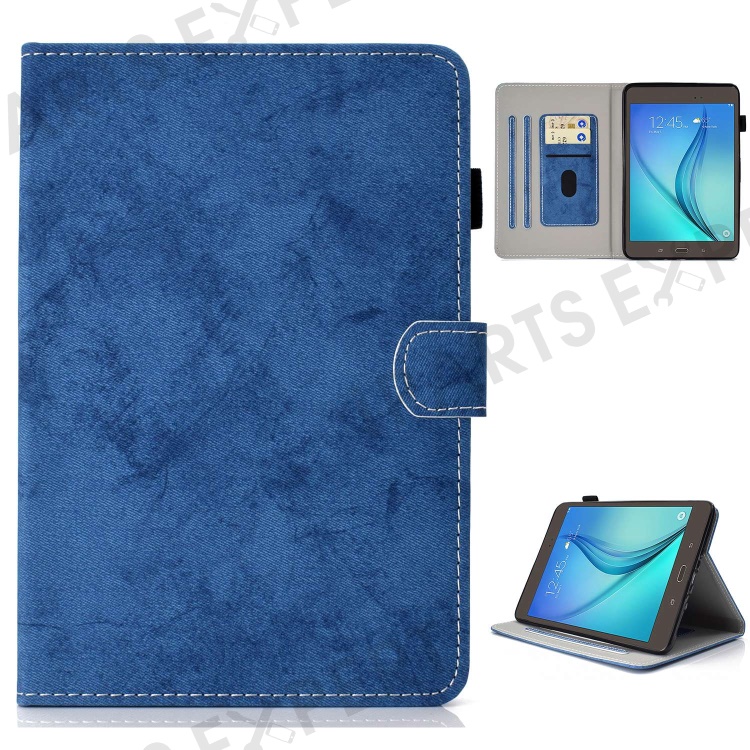 For Samsung Galaxy Tab A 8.0 SM-T350 / T355C (2015) Cloth Texture PU Leather Tablet Case Anti-drop Stand Cover with Card Holder - Blue